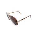 Featuring a classic aviator silhouette with brown lenses, a tortoiseshell effect acetate frame, and a golden metal bridge, these sunglasses are ideal for achieving a vintage look.