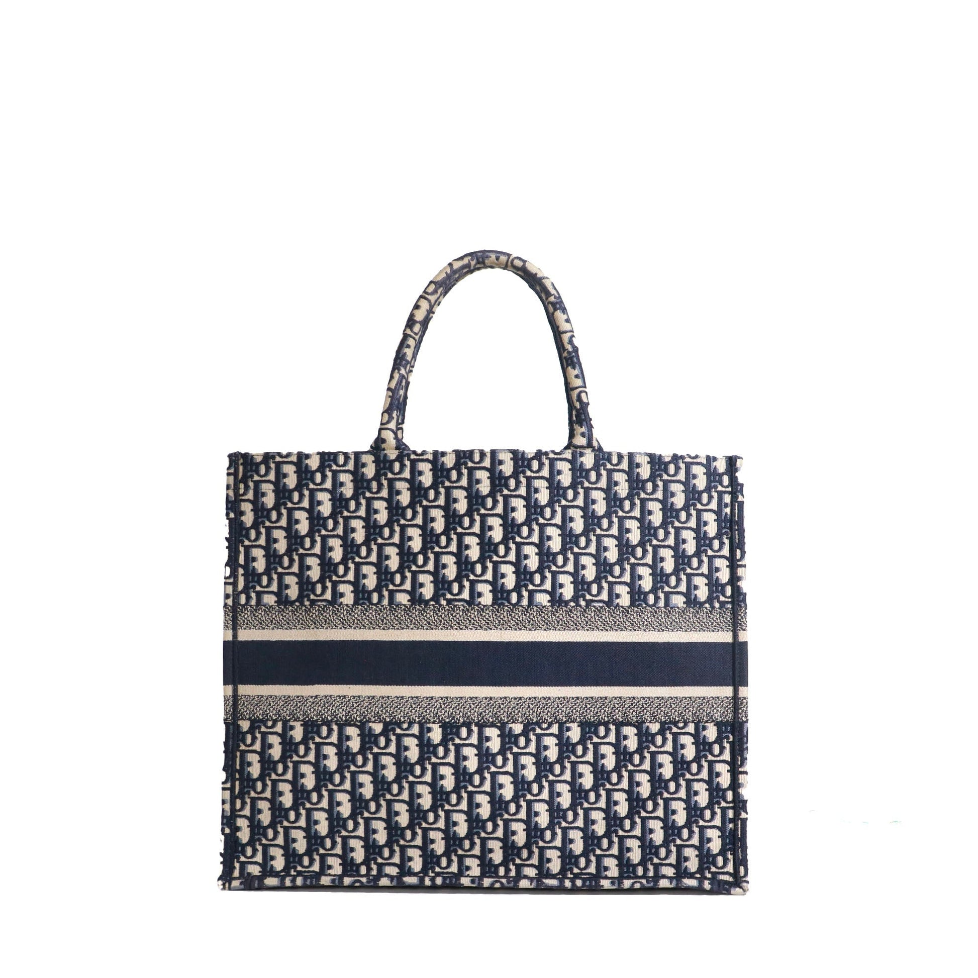 Model: Book Tote Material: Dior Oblique canvas Color: Navy blue Dimensions: 42 x 35 x 18.5 cm Large capacity Year: 2018 Slightly weathered corners Some minimal marks on the canvas