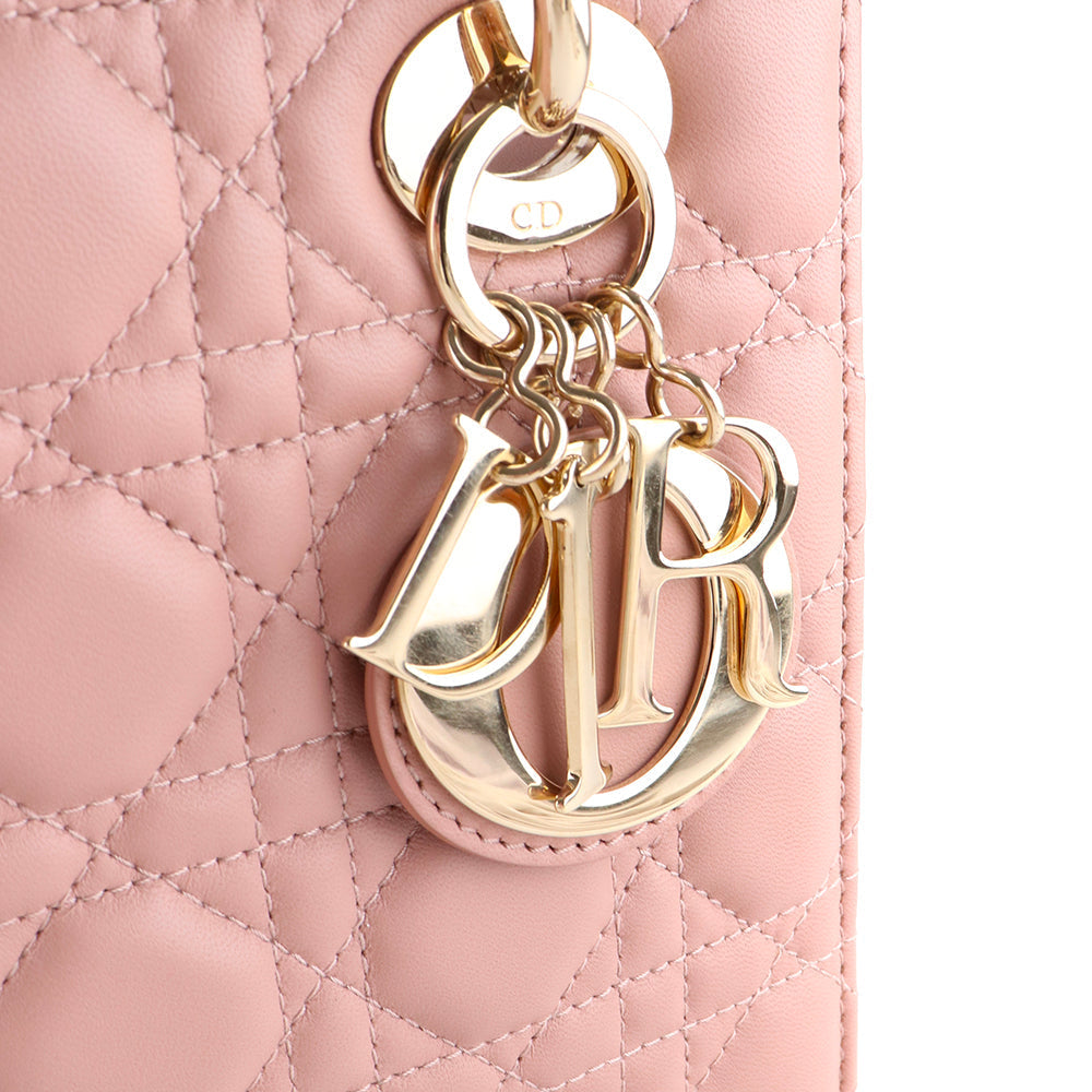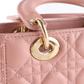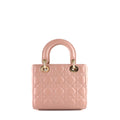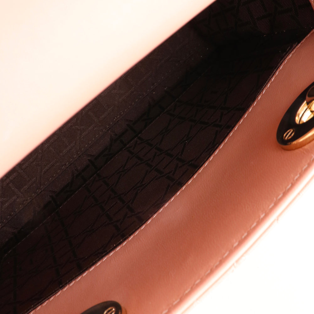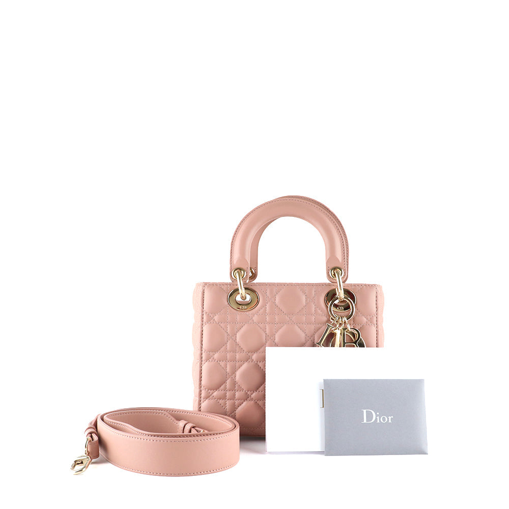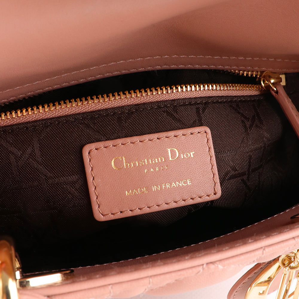 Model: Lady Dior Material: leather Color: nude pink (eyeshadow at Dior) Dimensions: 20 x 17 x 8 cm A main compartment and an internal zipped pocket Removable leather strap (length 112-116cm) Champagne jewelry Charms M and removable on the shoulder Very slightly patinated corners