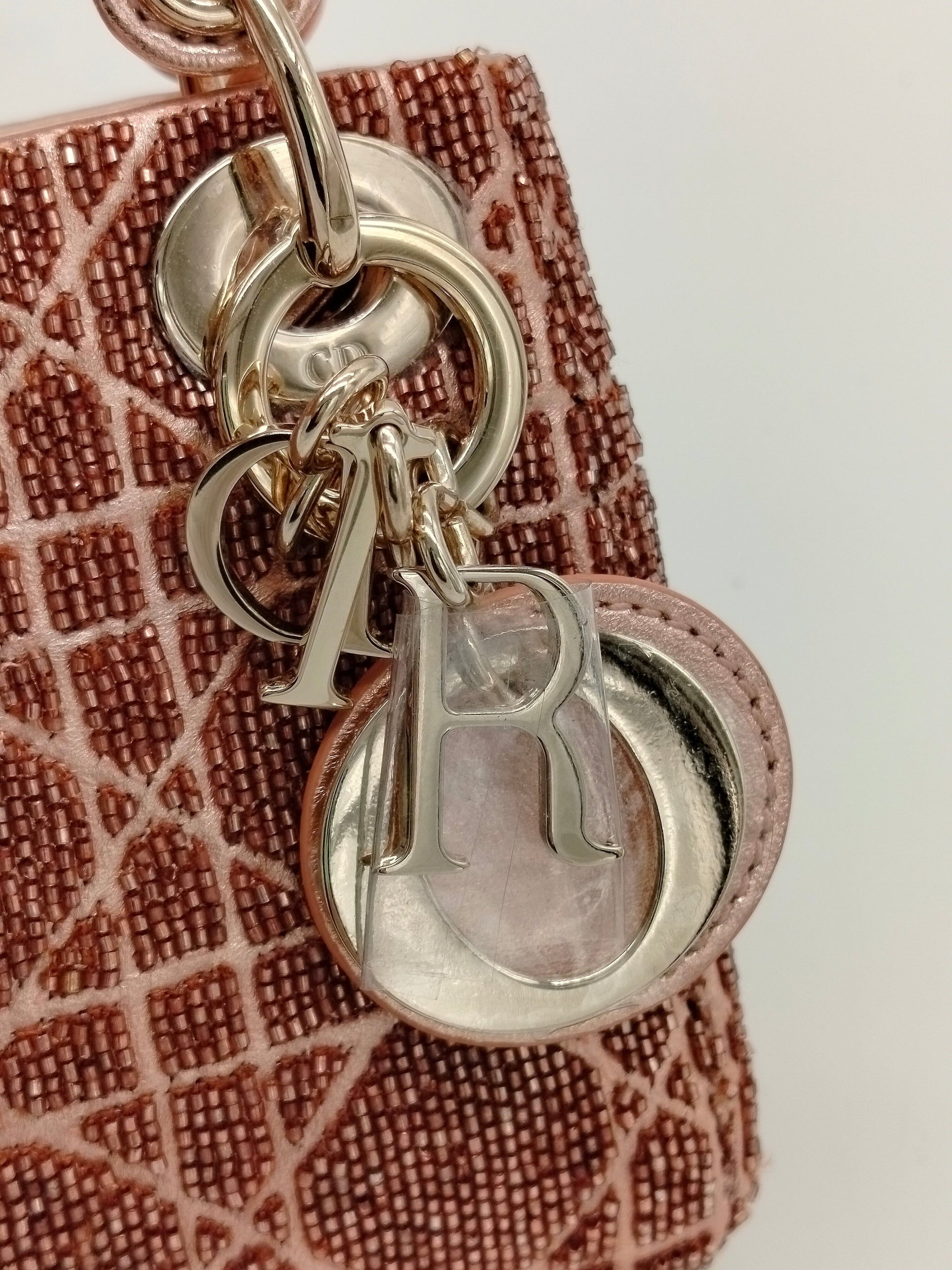 Crafted in pink sequins with signature Cannage stitching and its iconic silhouette adorned with a DIOR charm, the Lady Dior bag holds all the small essentials and can be carried by hand, over the shoulder or slung across the body thanks to its handles and adjustable and detachable shoulder strap.