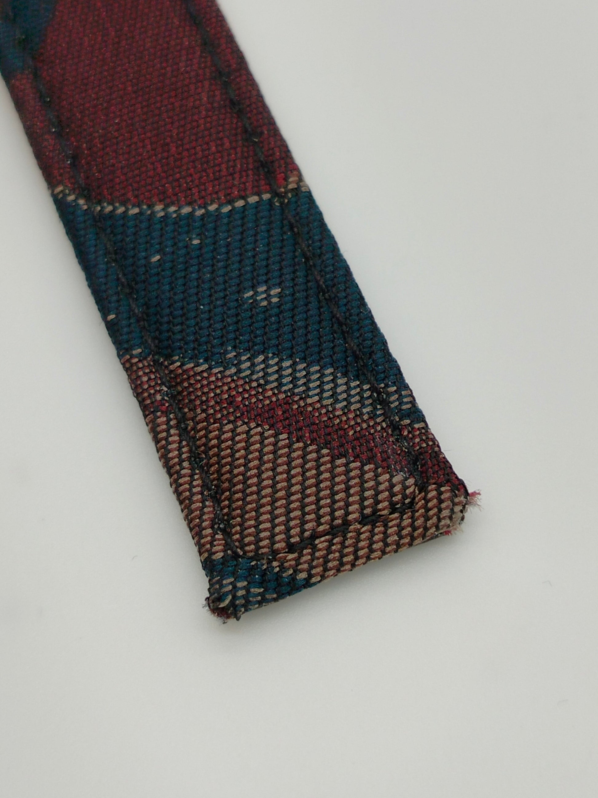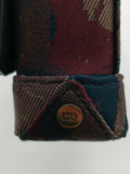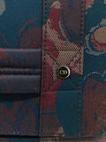 This shoulder bag features a printed canvas body, an adjustable flat strap, a front flap with magnetic closure, and an interior slip pocket.