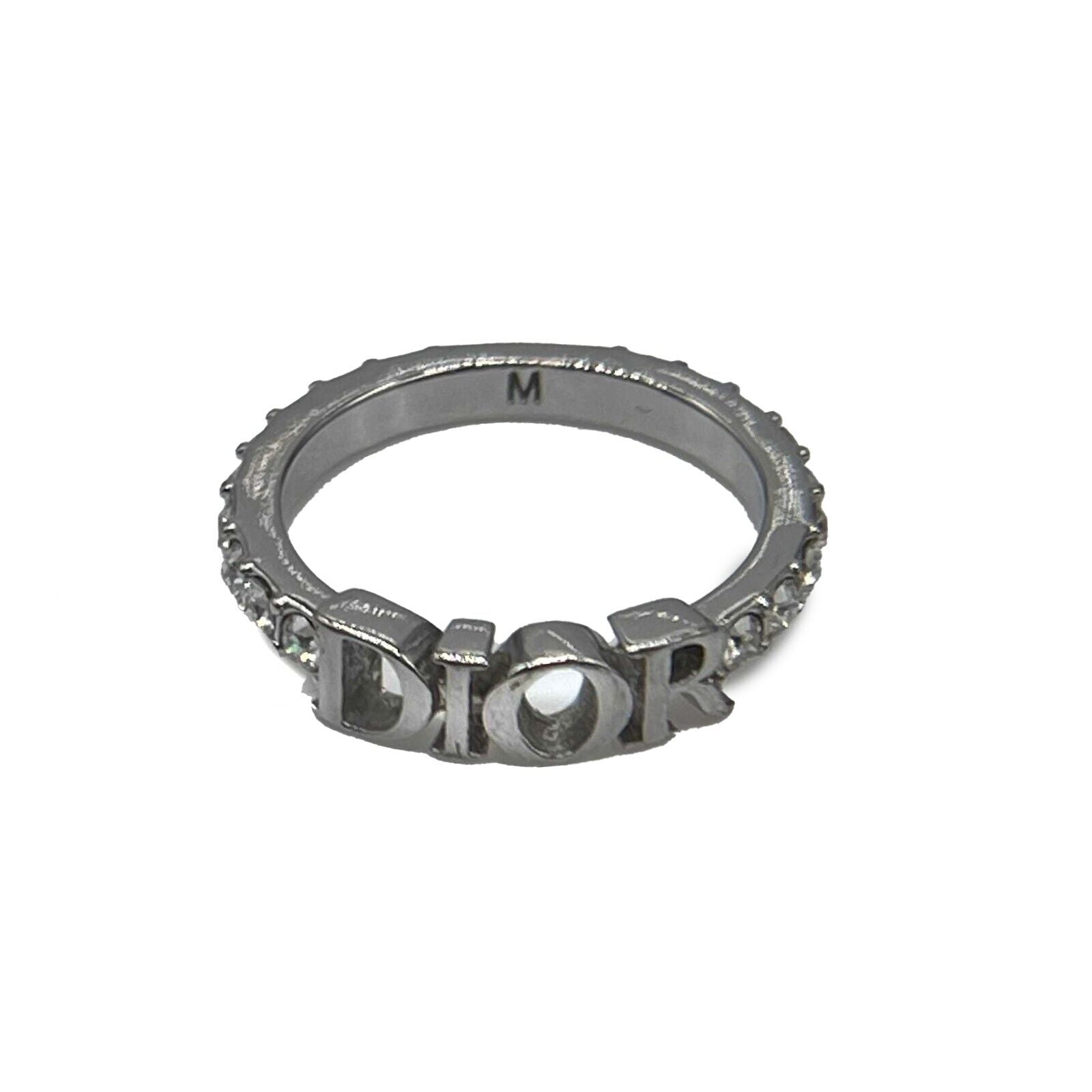 DIOR Dio[r]evolution Silver Finish Metal White Crystal Ring Size M 6