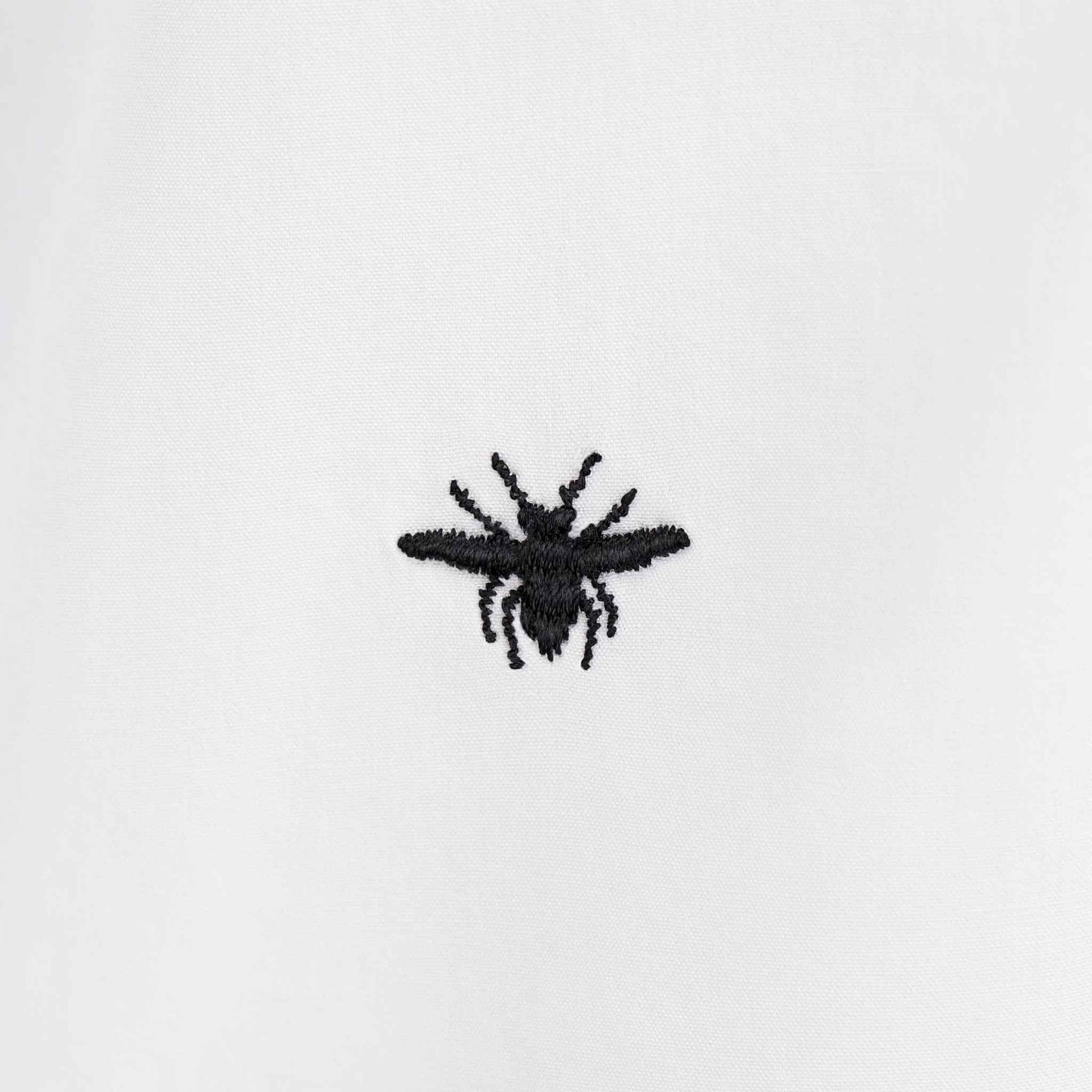 The fine woven construction ensures a lightweight and breathable feel, while the slightly fitted cut offers a tailored yet comfortable fit. Subtle yet distinctive black Bee embroidery at the waist adds a signature Dior detail, reflecting the House’s timeless elegance. A concealed button placket with Dior-engraved white buttons further enhances the sleek, polished design.