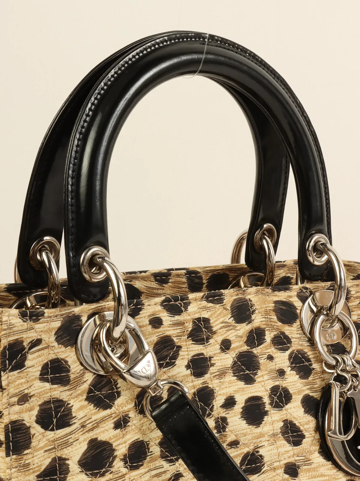 DIOR Leopard Ledy Cannage Stitch 2Way Bag M Brown/Black