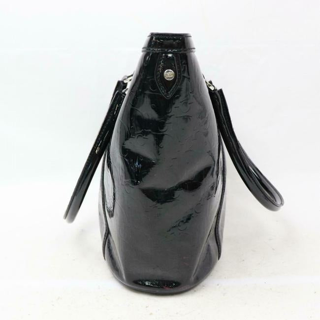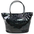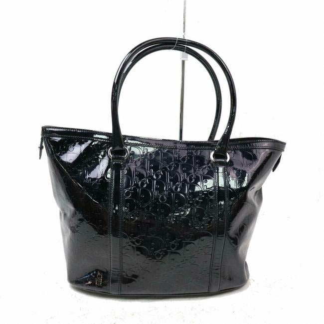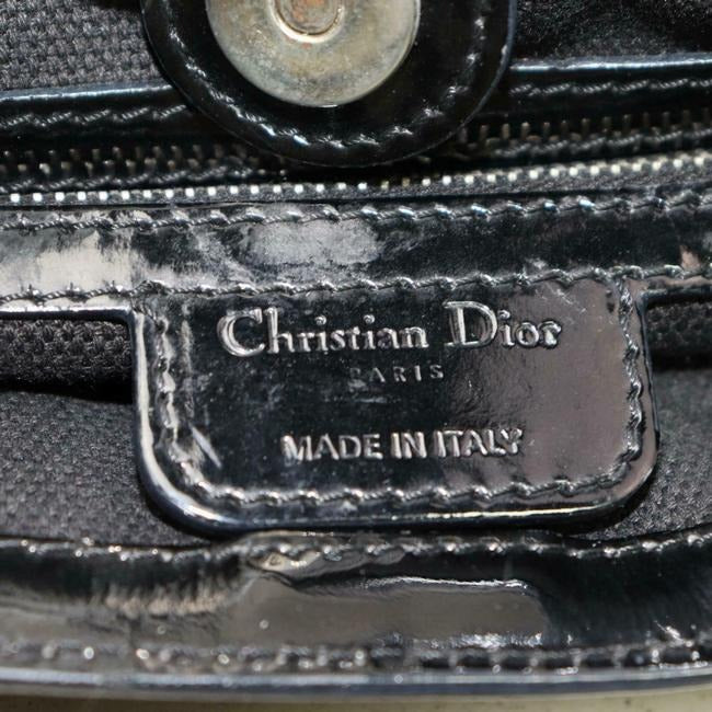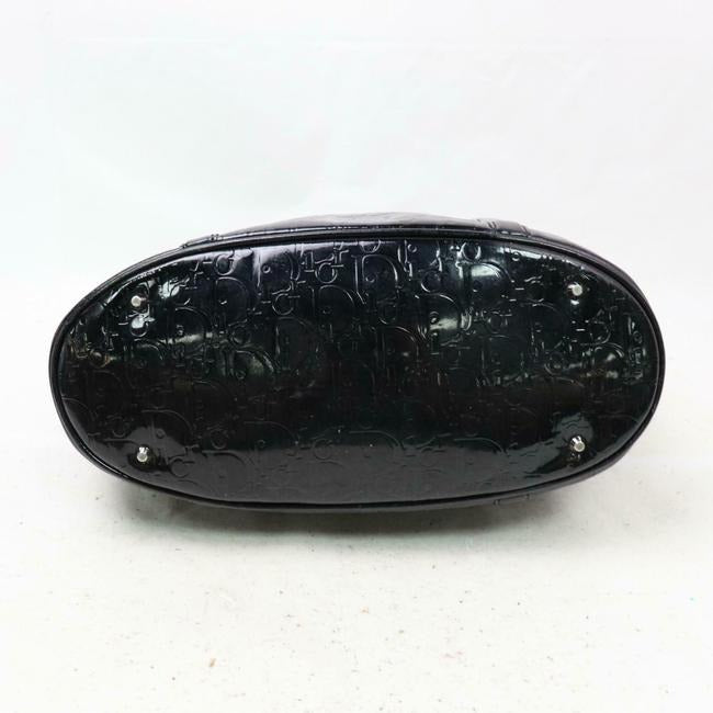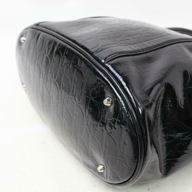 Dior Satchel Or Black Glossy Embossed Trotter Logo Print Enamel Leather Patent Tote