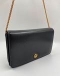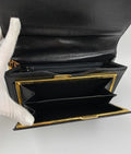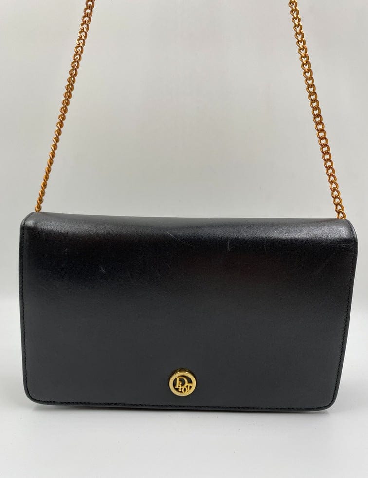 A forever classic Christian Dior Bag in a beautiful black leather with gold hardware. There is a gold chain so that the Bag can be on the shoulder. Inside the Bag has one main compartment with a zipped pocket plus an additional compartment with frame clasp.