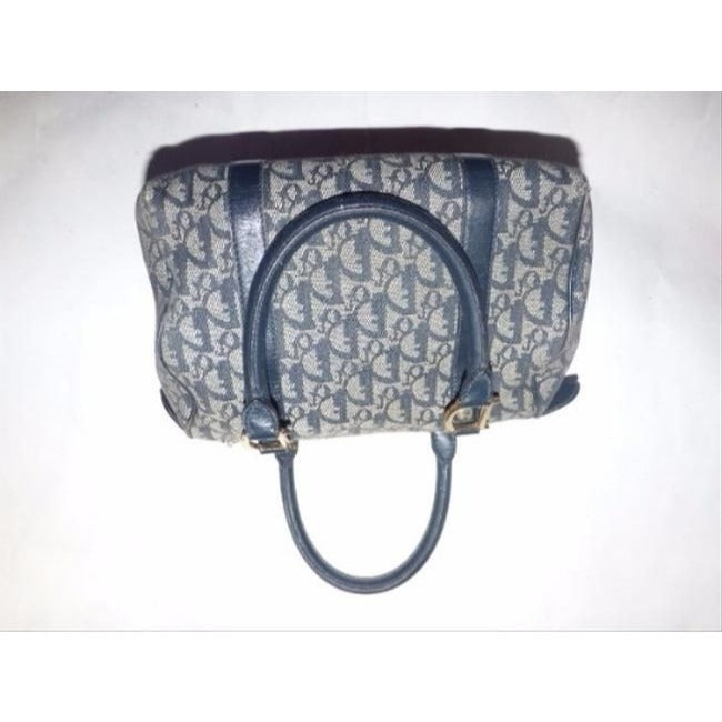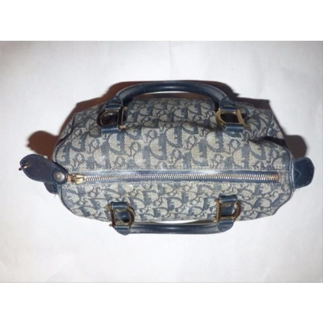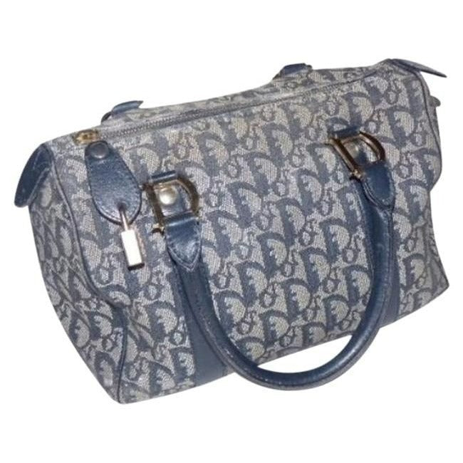 For sale is a Christian Dior, trotter style logo embroidered canvas and leather in shades of blue, satchel style purse with two rolled leather handles, bold, gold hardware and a padlock! This high end purse is a perfect piece that is very on trend without being trendy! This style purse by the European design house is timeless!