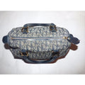 Dior Style Top Handle Blue Trotter Print Embroidered Canvas And Leather Satchel