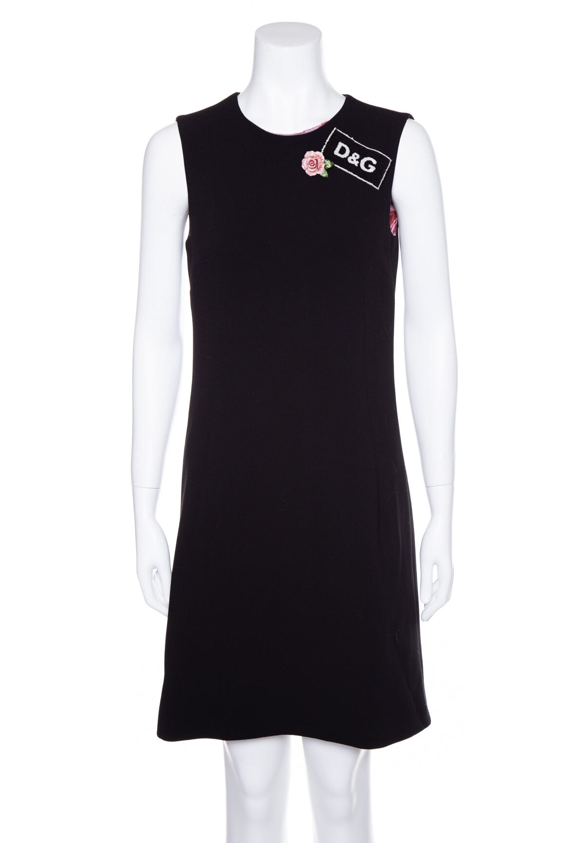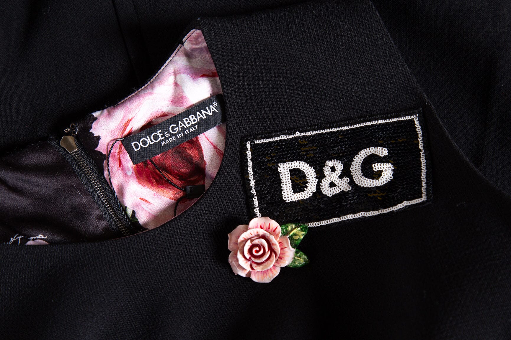 Dolce & Gabbana Black Shift Dress with Flower and Sequin DG Patch. This item is new with tags.