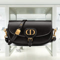 New this season, the Dior Bobby East-West Bag modernizes the allure of the Hobo silhouette through elegant lines and harmonious proportions. The box calfskin style features a suede interior for added suppleness as well as antique gold-finish metal hardware. Adorned with a removable, adjustable sliding shoulder strap with a signature military-inspired buckle, the Dior Bobby Bag can be carried by hand, over the shoulder by day or crossbody for a sportier look. Flap closure Magnetic clasp with decorative CD buckle Embossed 30 MONTAIGNE signature on the back Back pocket Interior patch pocket Adjustable and removable sliding leather shoulder strap Christian Dior military-inspired buckle Dust Bag included Made in ItalyBox Calfskin Product code:M9327UMOL_M900