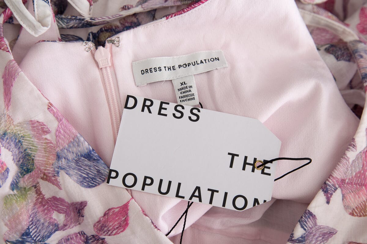 Dress the Population Pink and White Embroidered Flower Maxi Dress SZ XL NWT