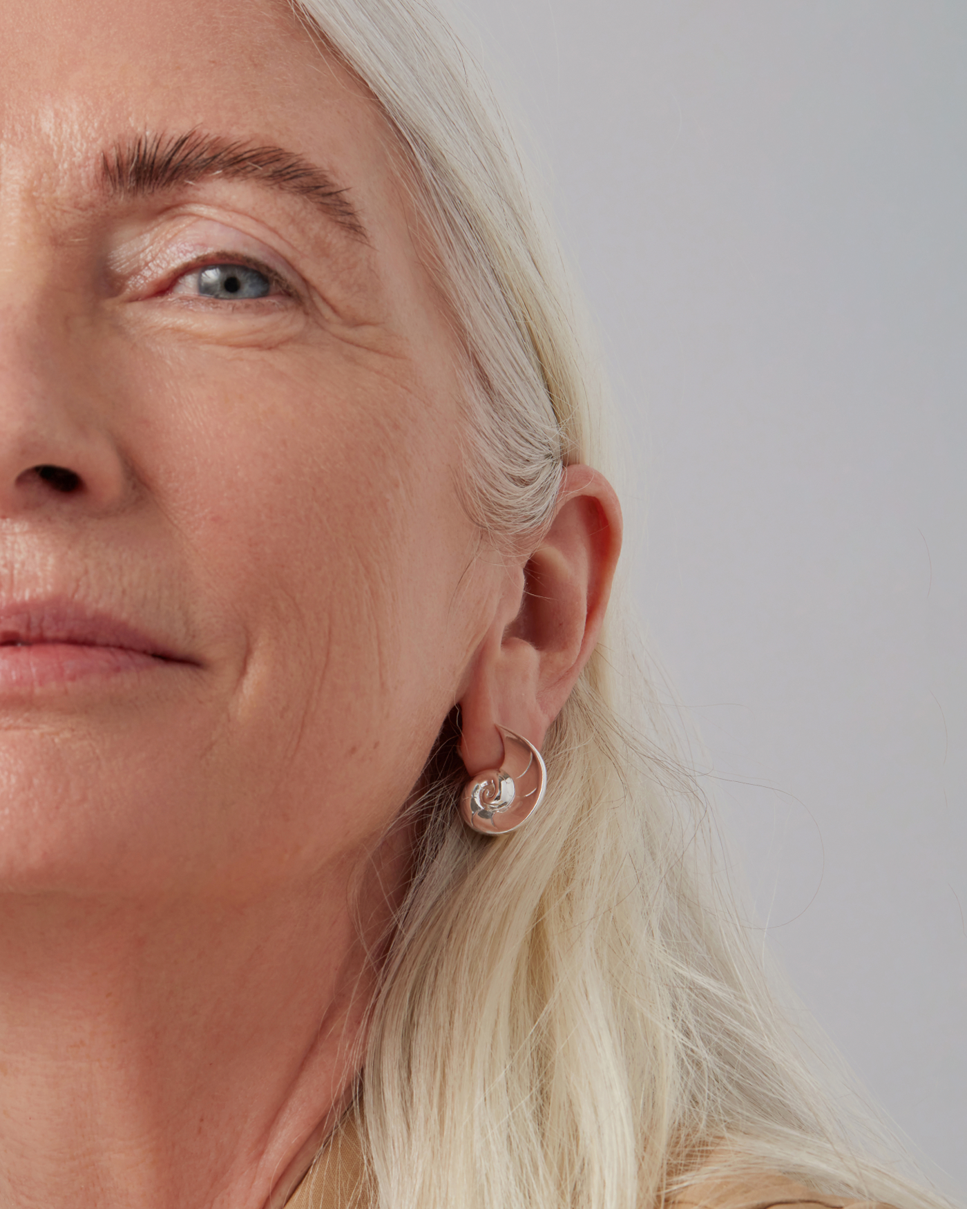 A pair of nautilus earrings, capturing the beauty of the shell in profile. These can be worn two ways; showcasing the interior or exterior of the shell closest to your face. Finished in high-polish silver.