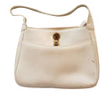 For sale is a large, early, G. Gucci, white & ivory leather, 'Padlock' style, hobo shoulder bag with a bold gold clasp, a wider strap, and front exterior pocket! It is a the classic mod style from Gucci in the all leather style that would be great used as your signature white or neutral purse!