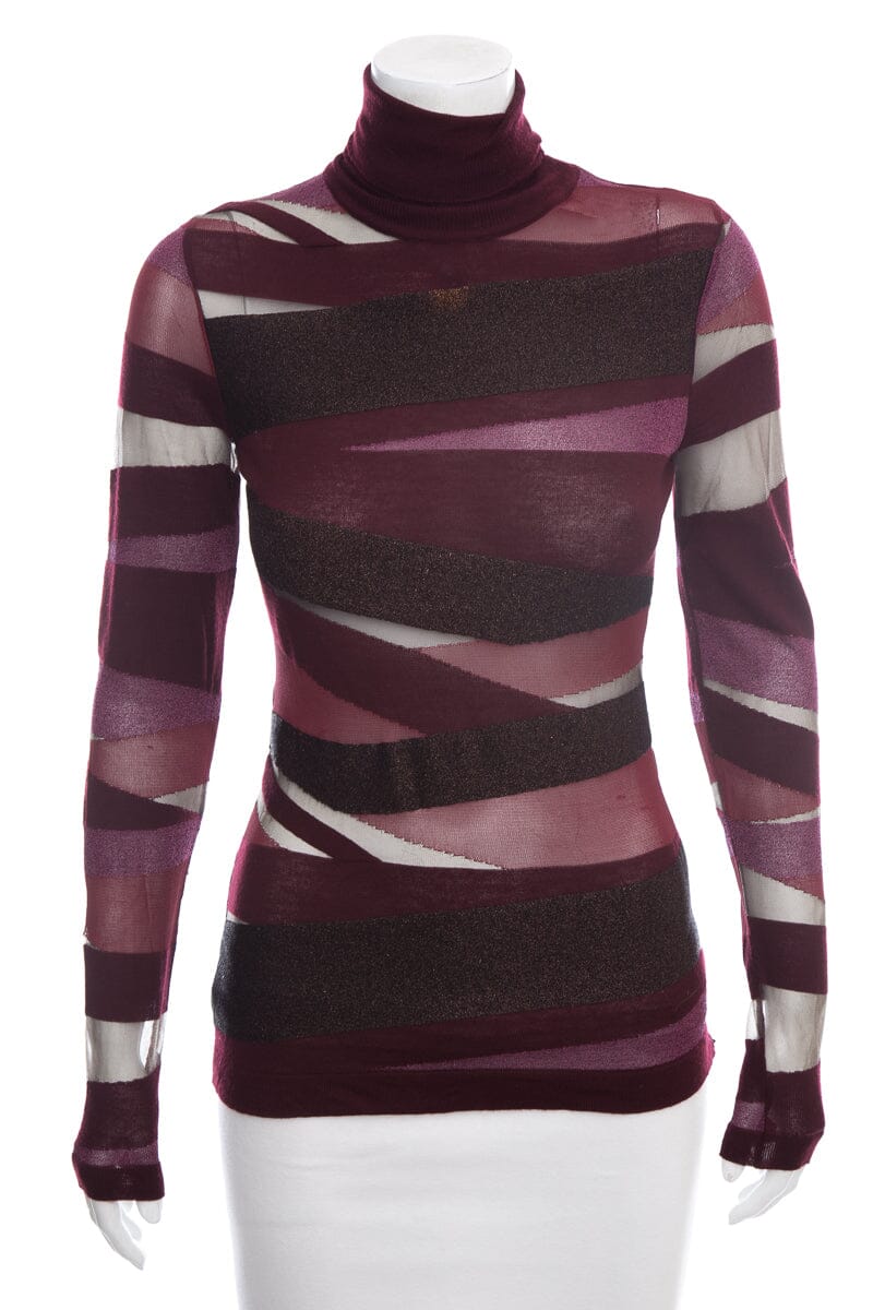 Emilio Pucci Maroon Stripped Multi Sweater with Sparkle and Mesh Throughout. This item is in good condition.