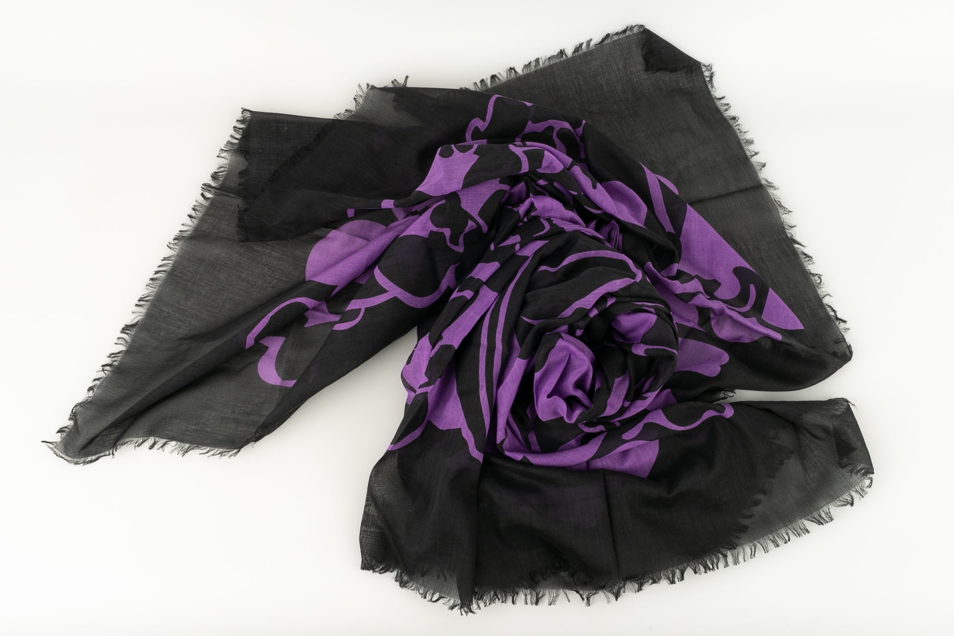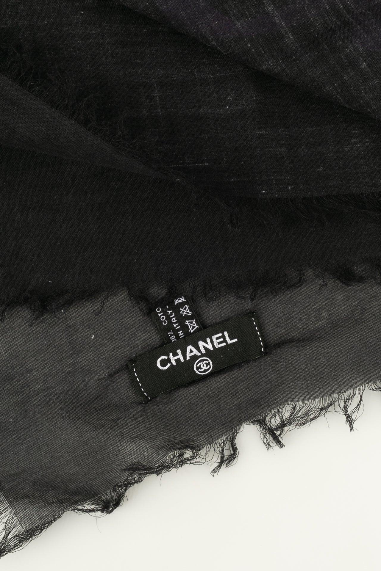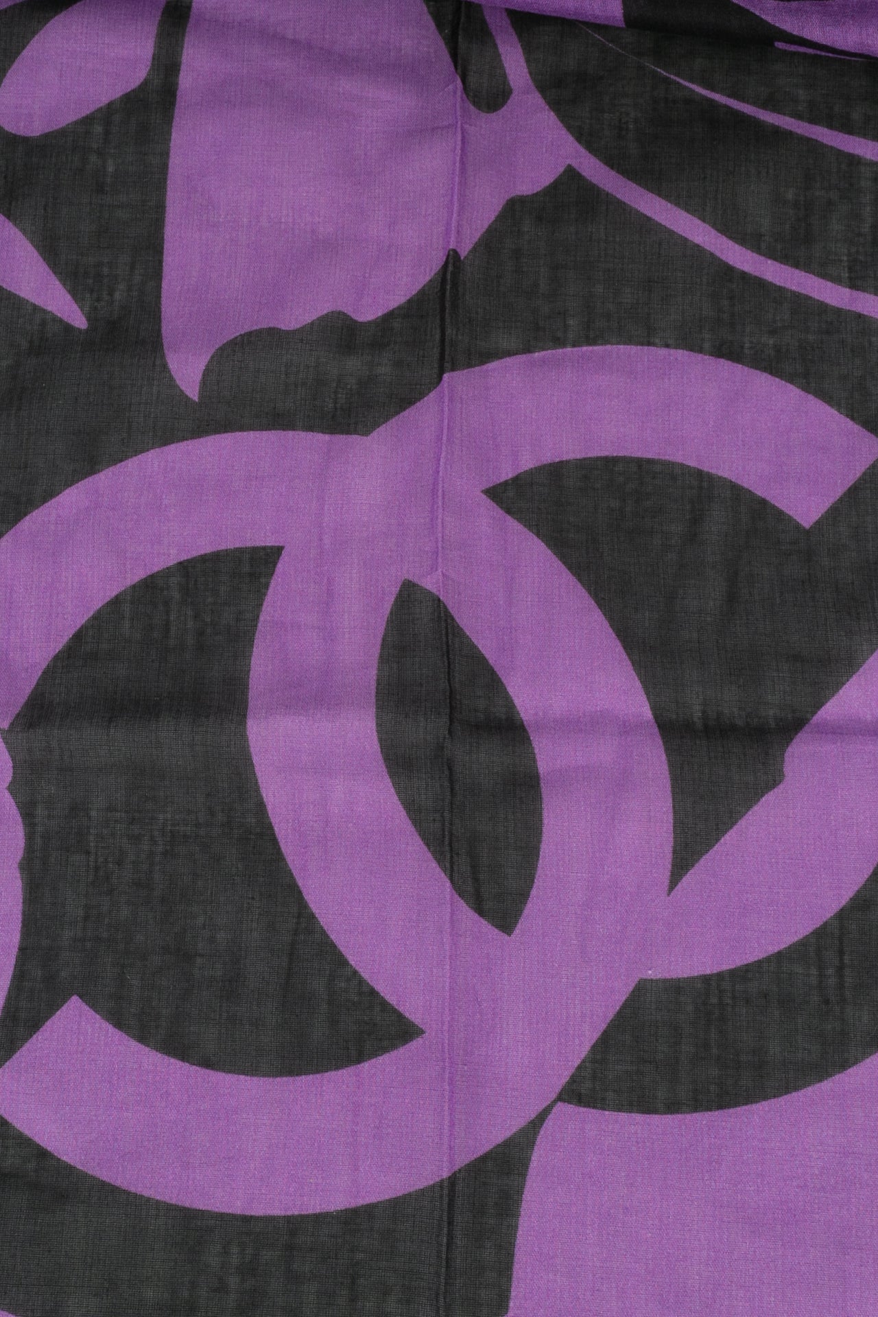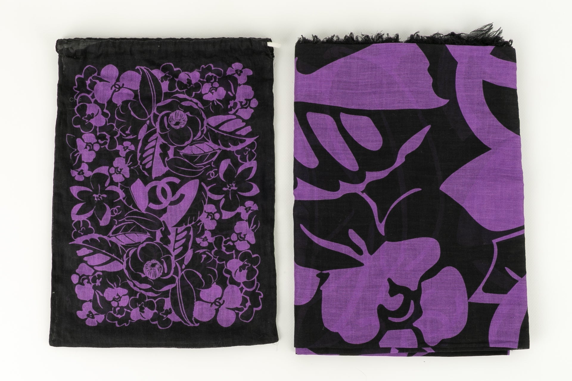 CHANEL -(Made in Italy) Ensemble compos� d'une casquette r�glable et d'un par�o en coton dans les tons de noir et violet. Le par�o dispose d'un petit sac de rangement.