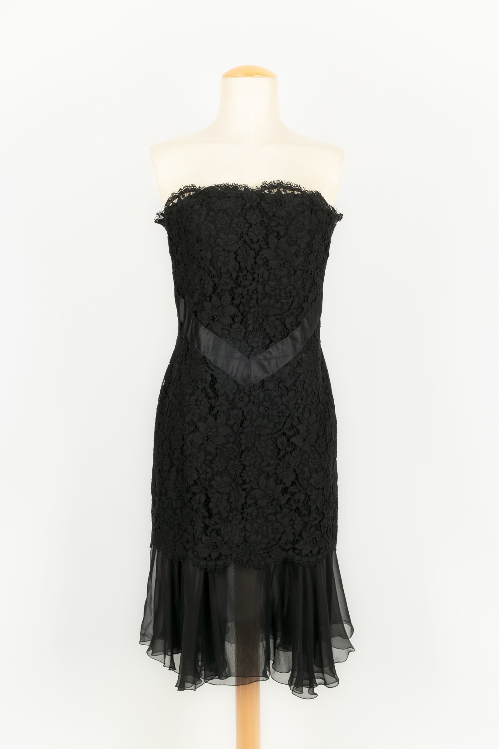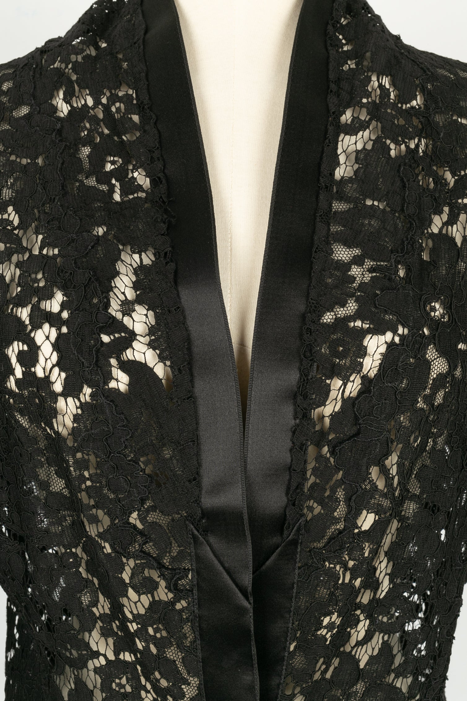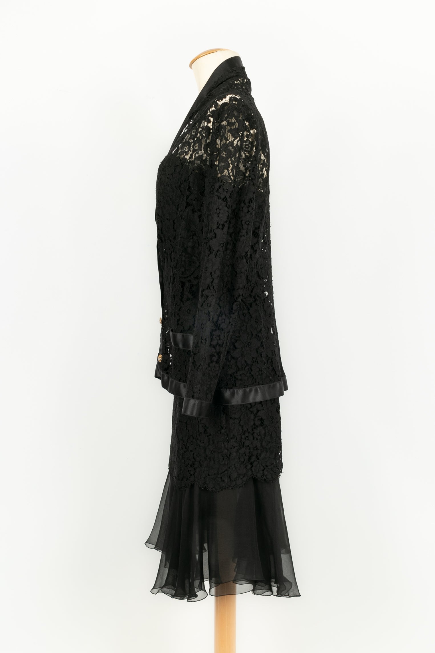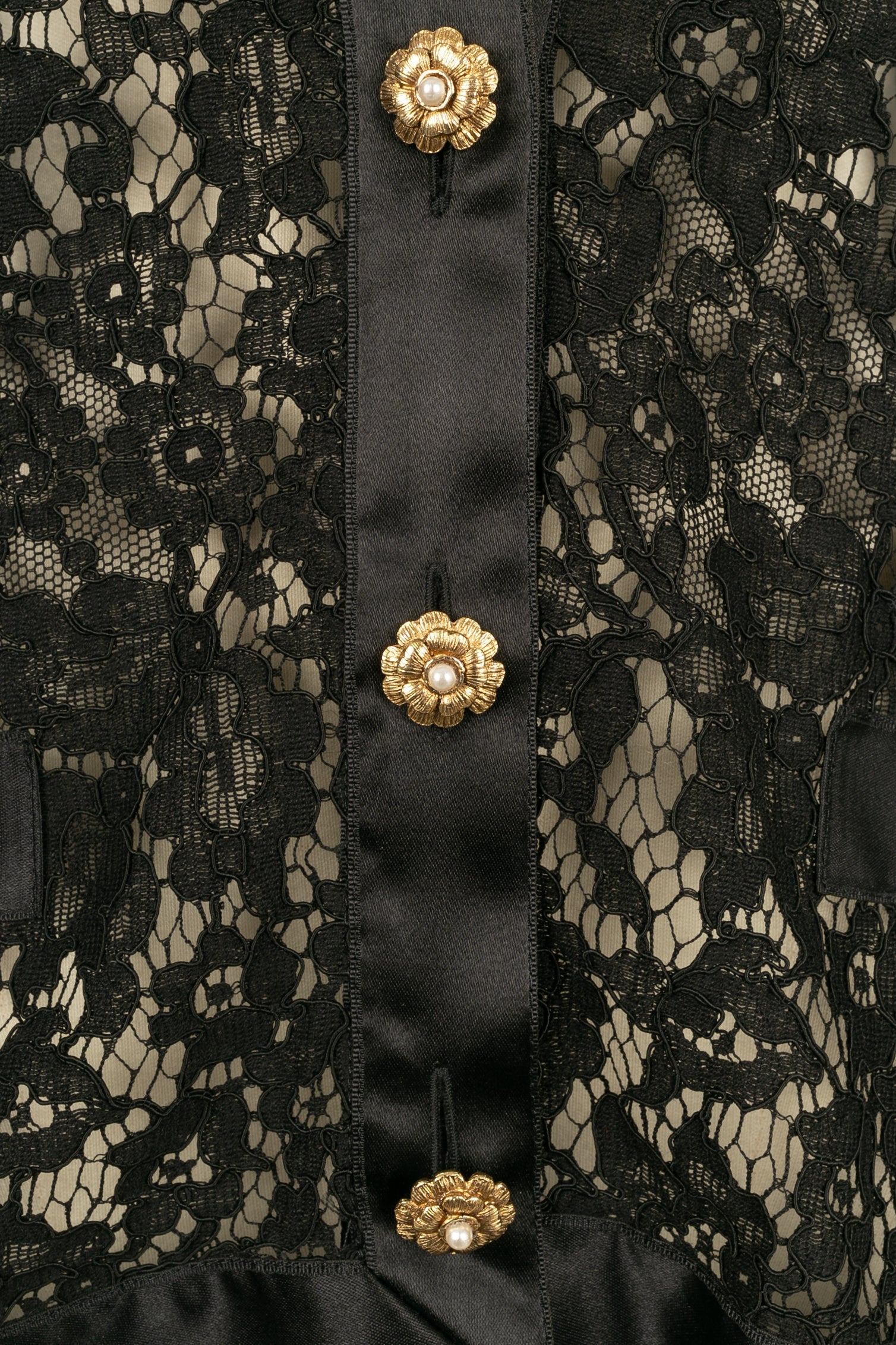 Note: Our Items are totally New High quality Brand Inspired Refurbished. Please make sure you are well aware of it before buying any of the Item. T&C's Apply in case of refunds.Please send us message on below chat to confirm availability. We will send the Refurbished Model in case you place an order with us. Enjoy Shopping.Always Send Us message to confirm availability before buying, In case of refund the transaction fee remains non refundable.�Thank�you. Ensemble en dentelle et soie noir compos� d'un haut bustier, d'une jupe et d'un gilet se fermant par des boutons cam�lia. Taille 40FR. Collection Automne-Hiver 1990/91.