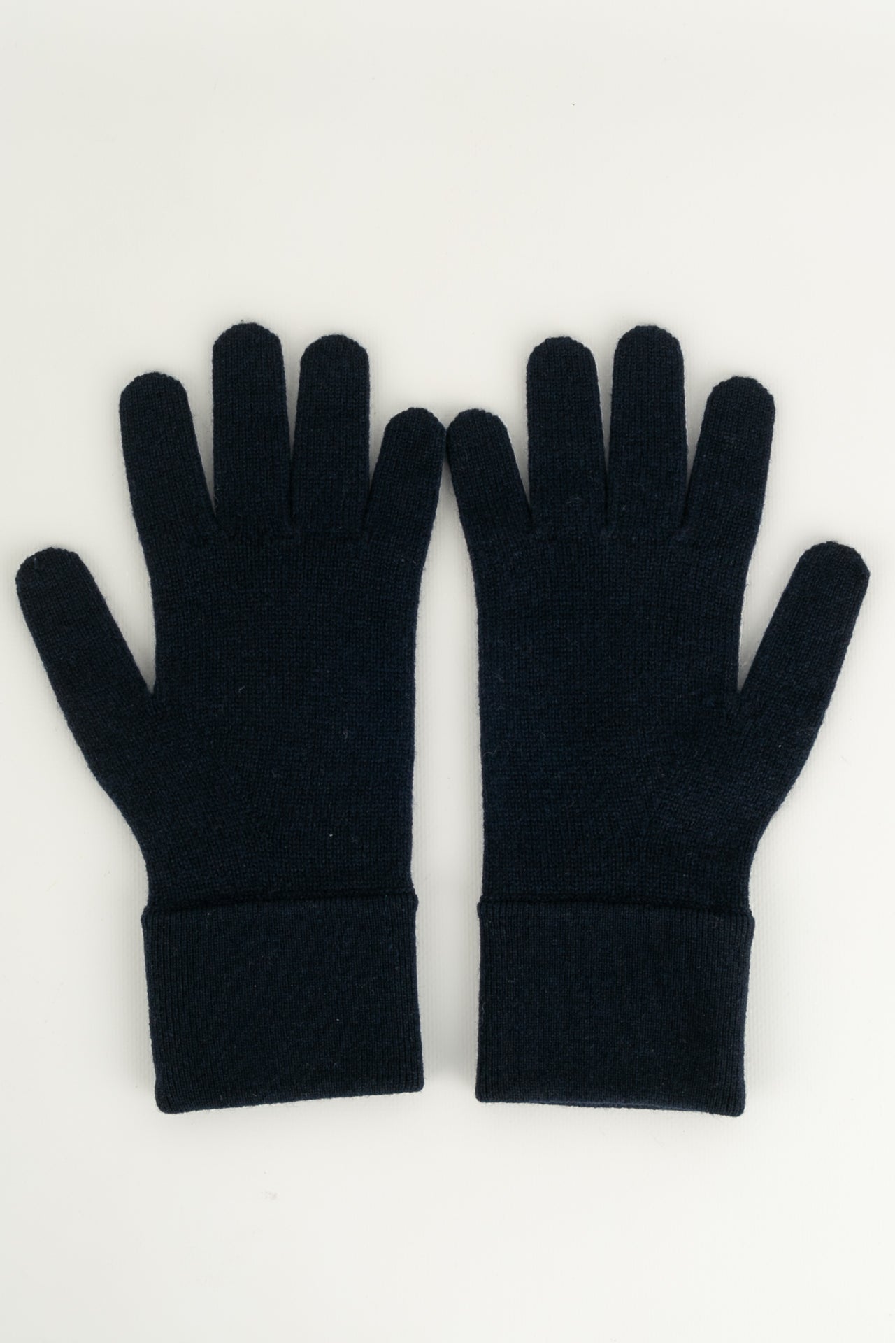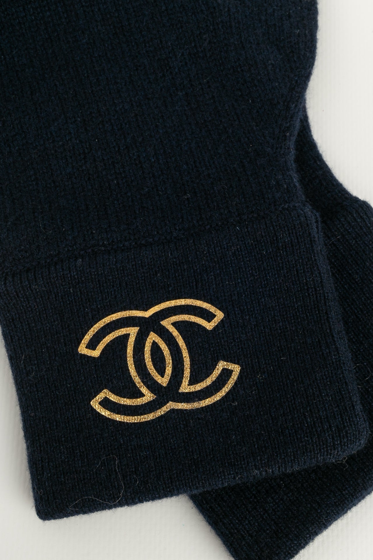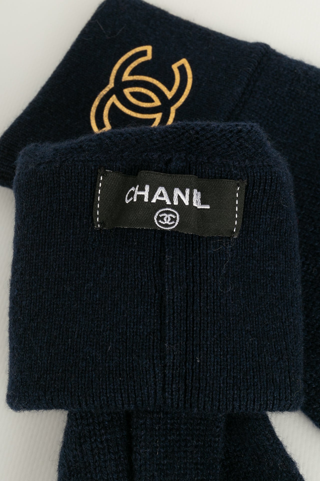 CHANEL - Ensemble en cachemire compos� d'une �charpe, une paire de gants et un bonnet en cachemire bleu. Etiquette de composition absente.