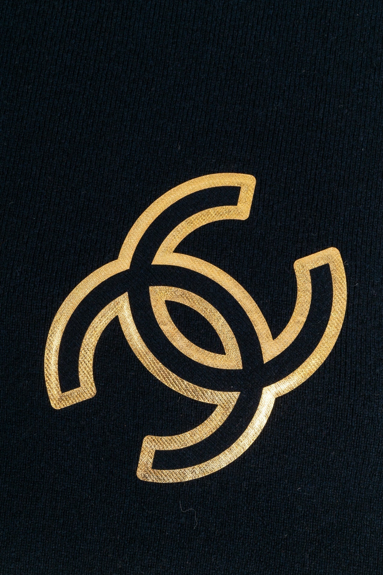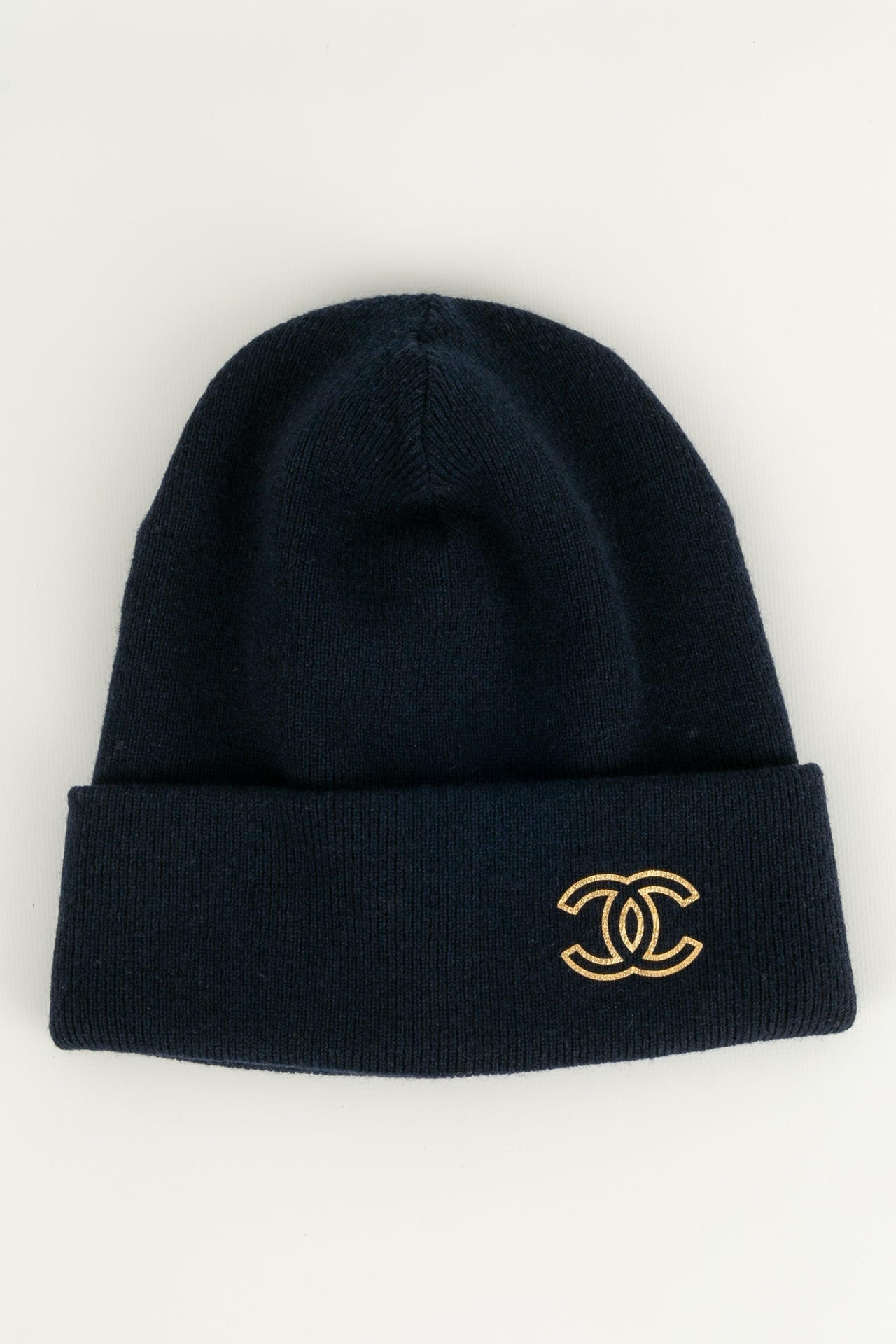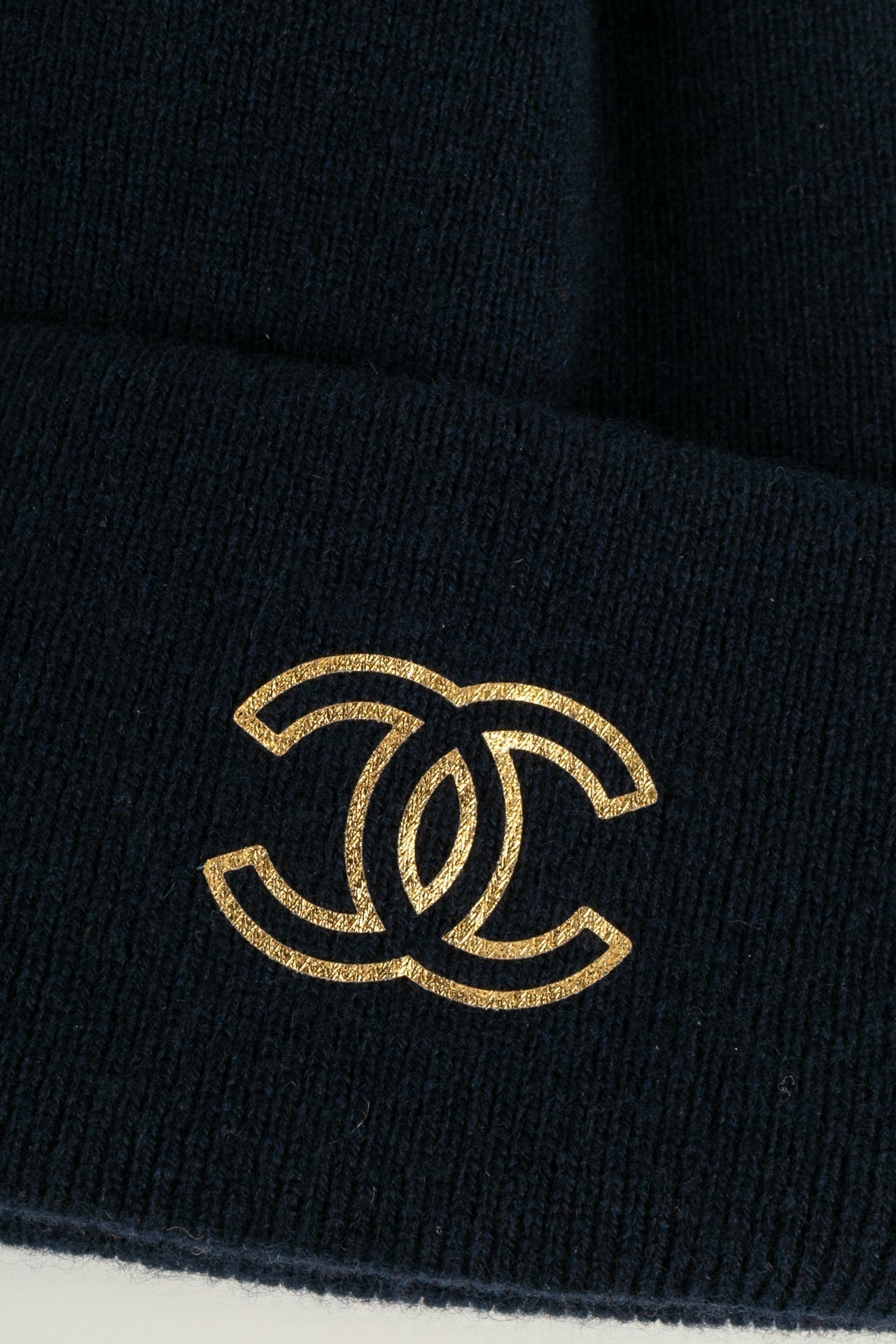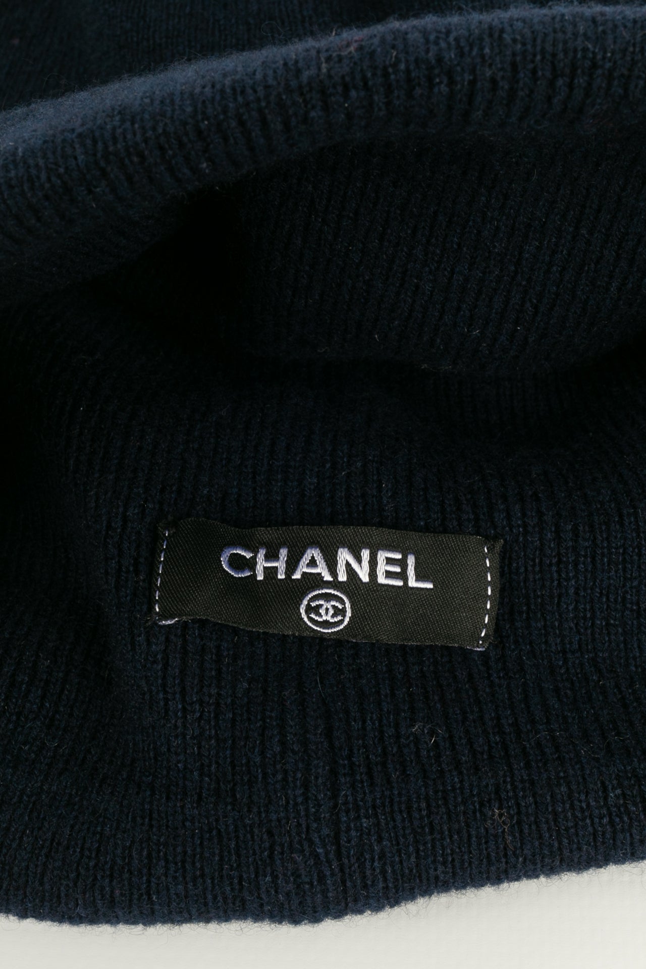 CHANEL - Ensemble en cachemire compos� d'une �charpe, une paire de gants et un bonnet en cachemire bleu. Etiquette de composition absente.