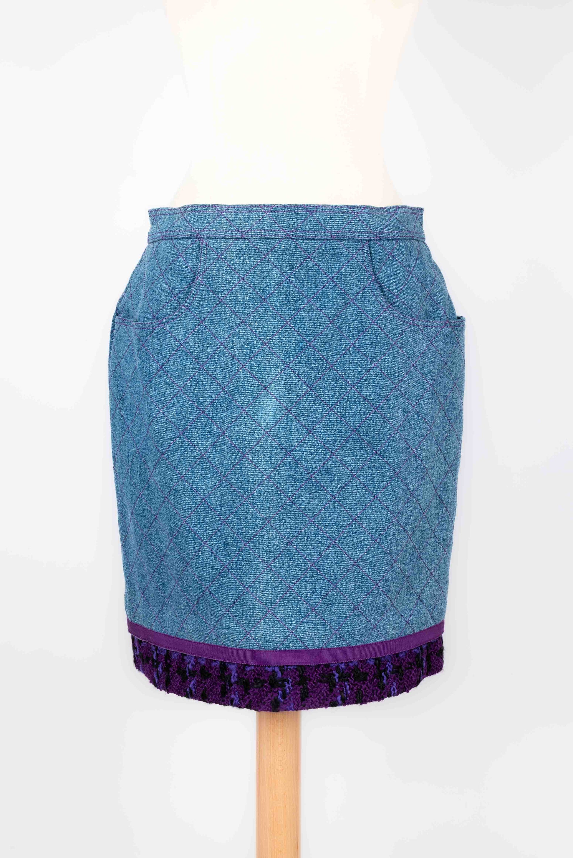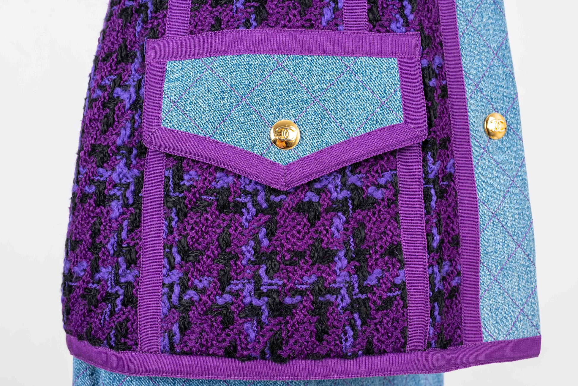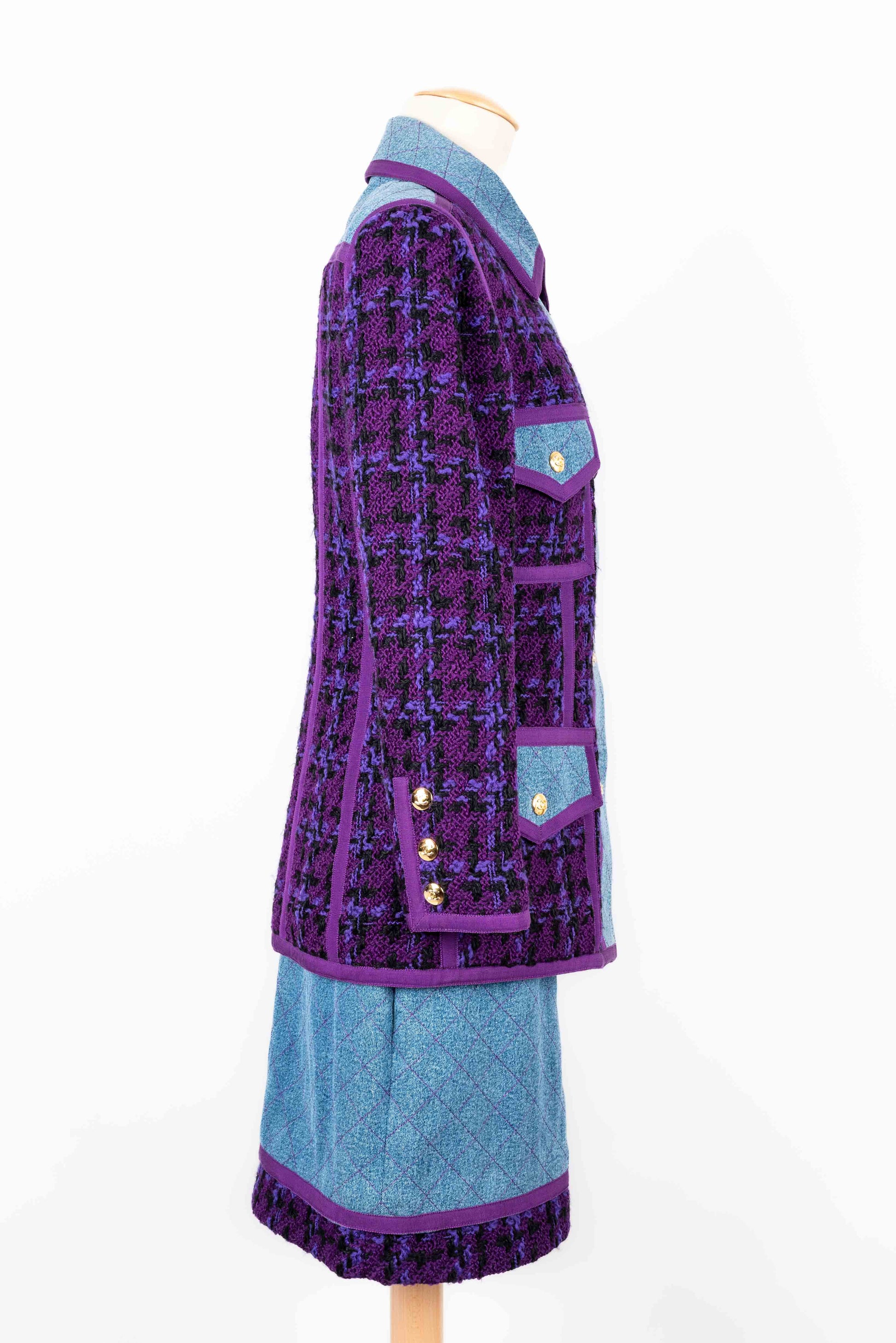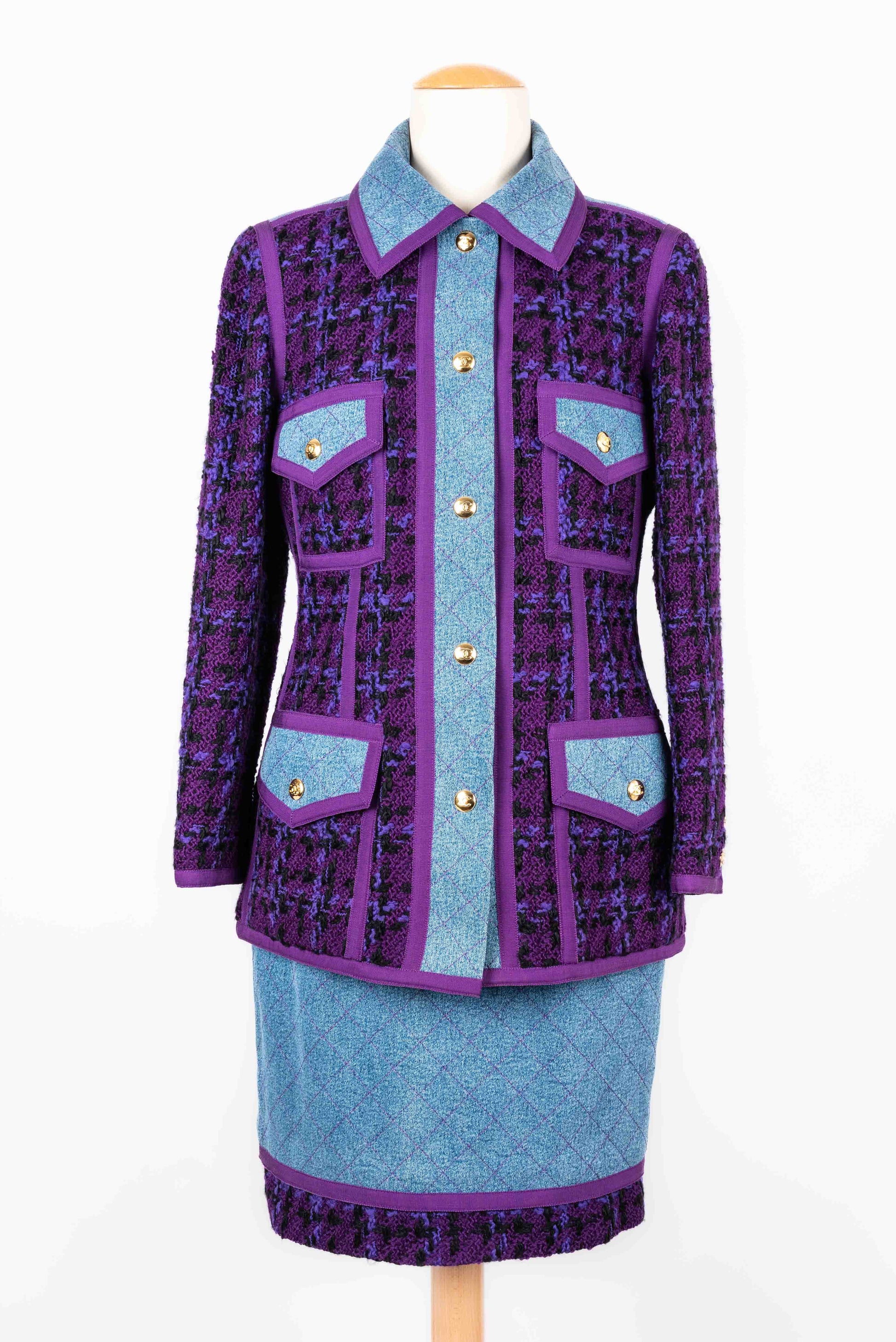 Note: Our Items are totally New High quality Brand Inspired Refurbished. Please make sure you are well aware of it before buying any of the Item. T&C's Apply in case of refunds.Please send us message on below chat to confirm availability. We will send the Refurbished Model in case you place an order with us. Enjoy Shopping.Always Send Us message to confirm availability before buying, In case of refund the transaction fee remains non refundable.�Thank�you. Ensemble tailleur compos� d'une jupe et veste en tweed dans les tons de violets et de noir, poches, col et boutonni�re en jeans matelass�. Taille indiqu�e 42FR. Collection Automne/Hiver 1991.