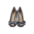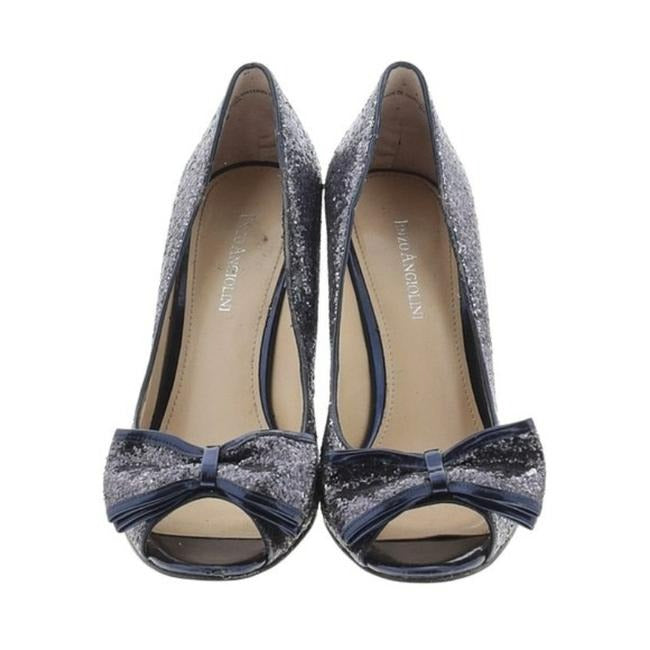 Enzo Angiolini Midnight Blue Glitter Peep Toe Slip-on Pumps. Size 9 M. 4" covered heels. 3-1/2" bow embellishment. Gently used with minor signs of wear. All measurements are approximate. thr1220