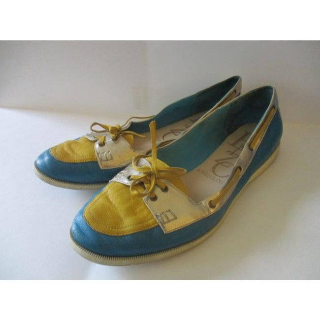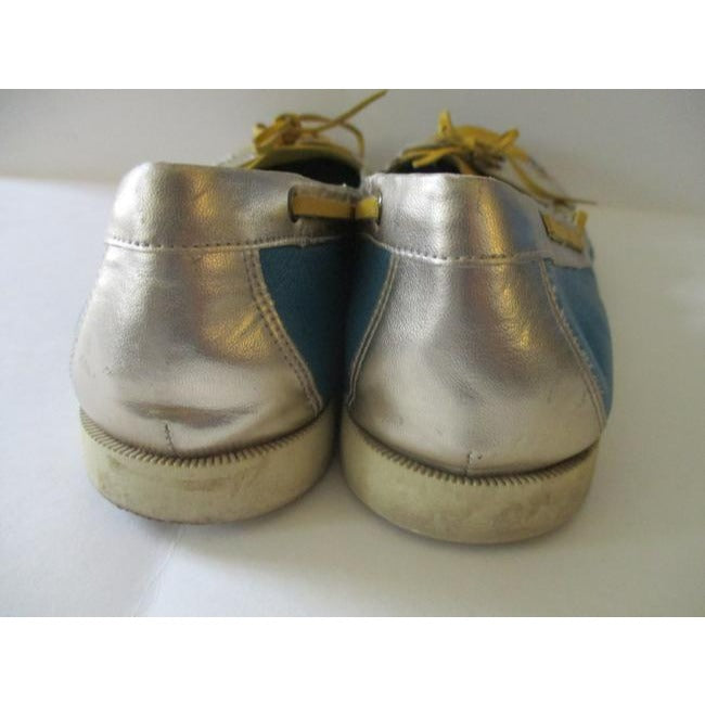 Enzo Angiolini Turquoise Teal Yellow Silver Moccasin Loafer Flats Size Us