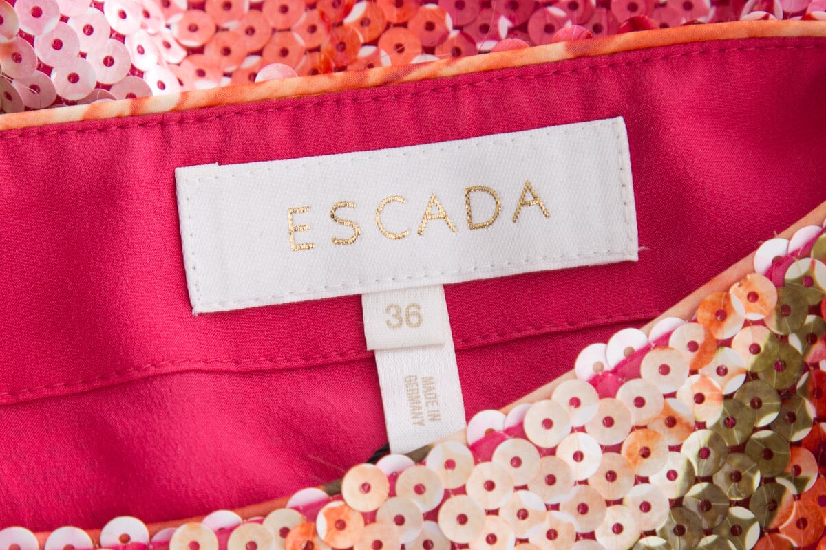 Escada Pink Sequin Floral Crop Top & Skirt Set SZ 36