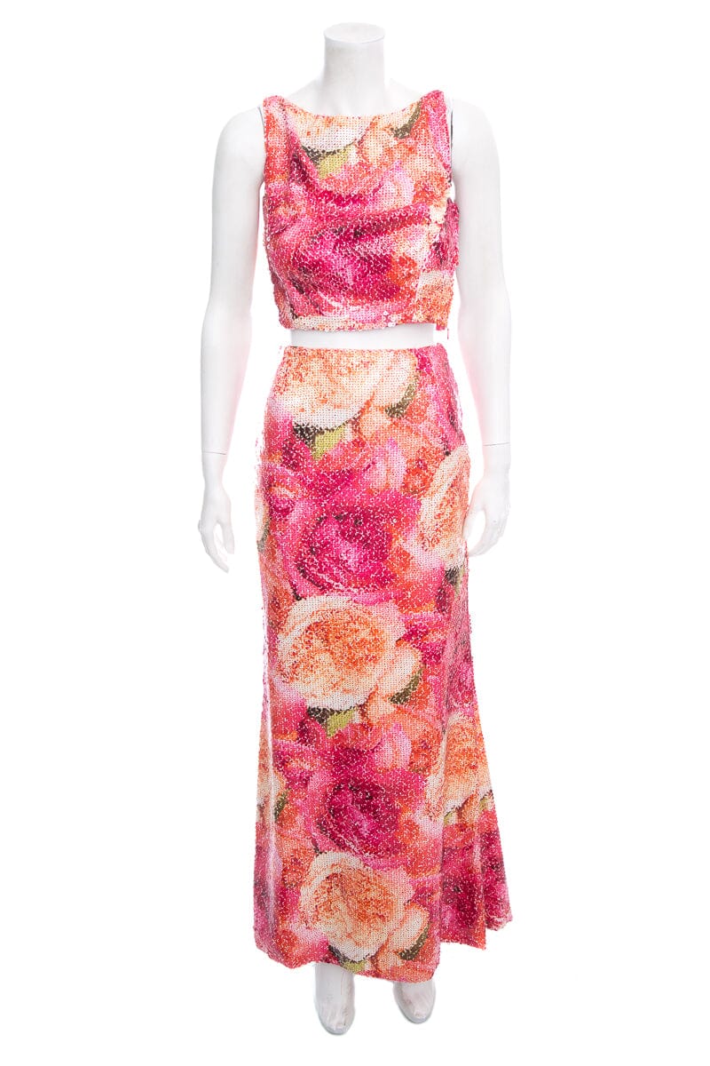 Escada Pink Sequin Floral Crop Top and Skirt 2PC Set. This item is in good condition.
