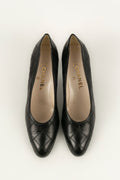CHANEL - (Made in Italy) Escarpins en cuir noir matelass�. Pointure 39FR