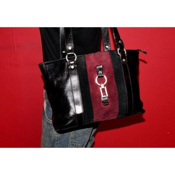 Etienne Aigner Vintage Black Burgundy Suede Tote
