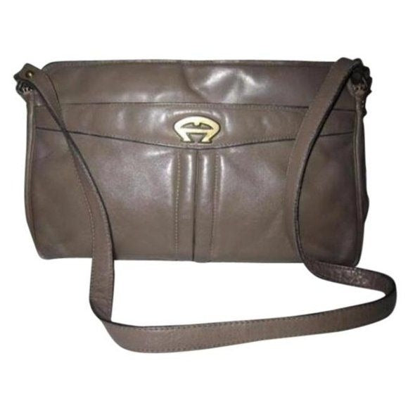 Etienne Aigner Vintage Taupe Leather Gold Accents Shoulder Bag