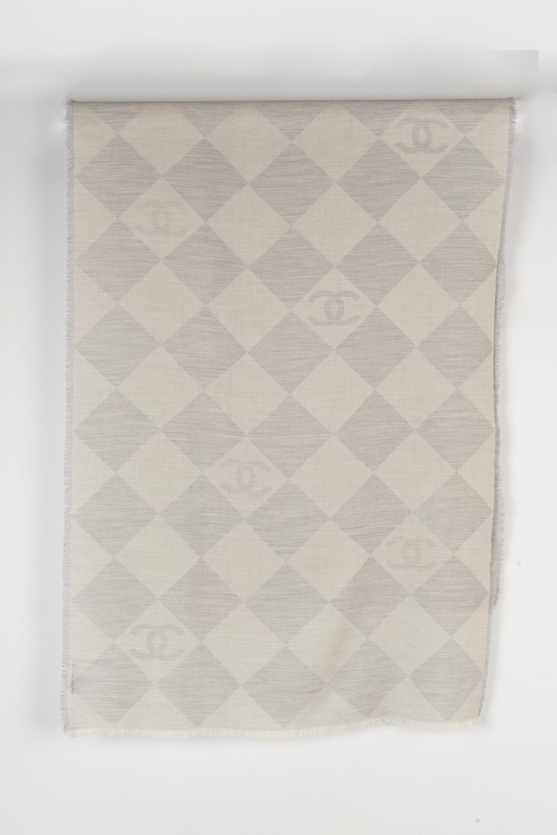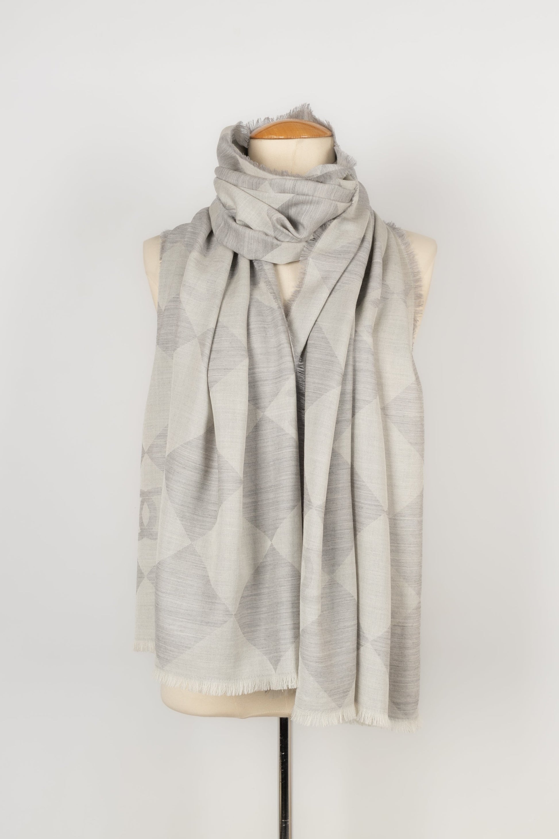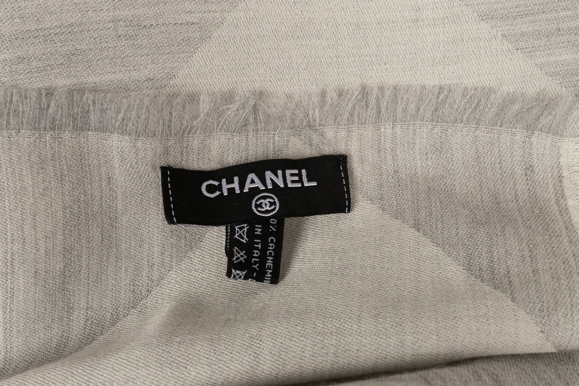 CHANEL - (Made in Italy) Grande étole en cachemire dans les tons de gris.