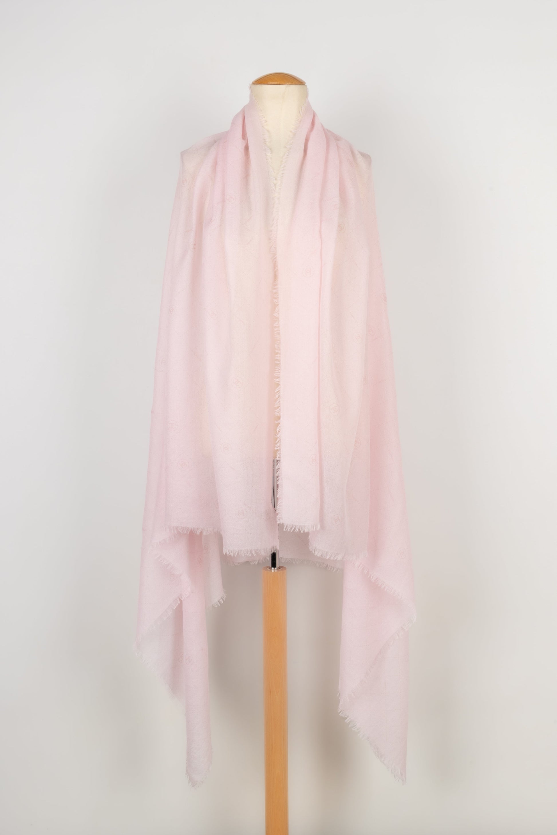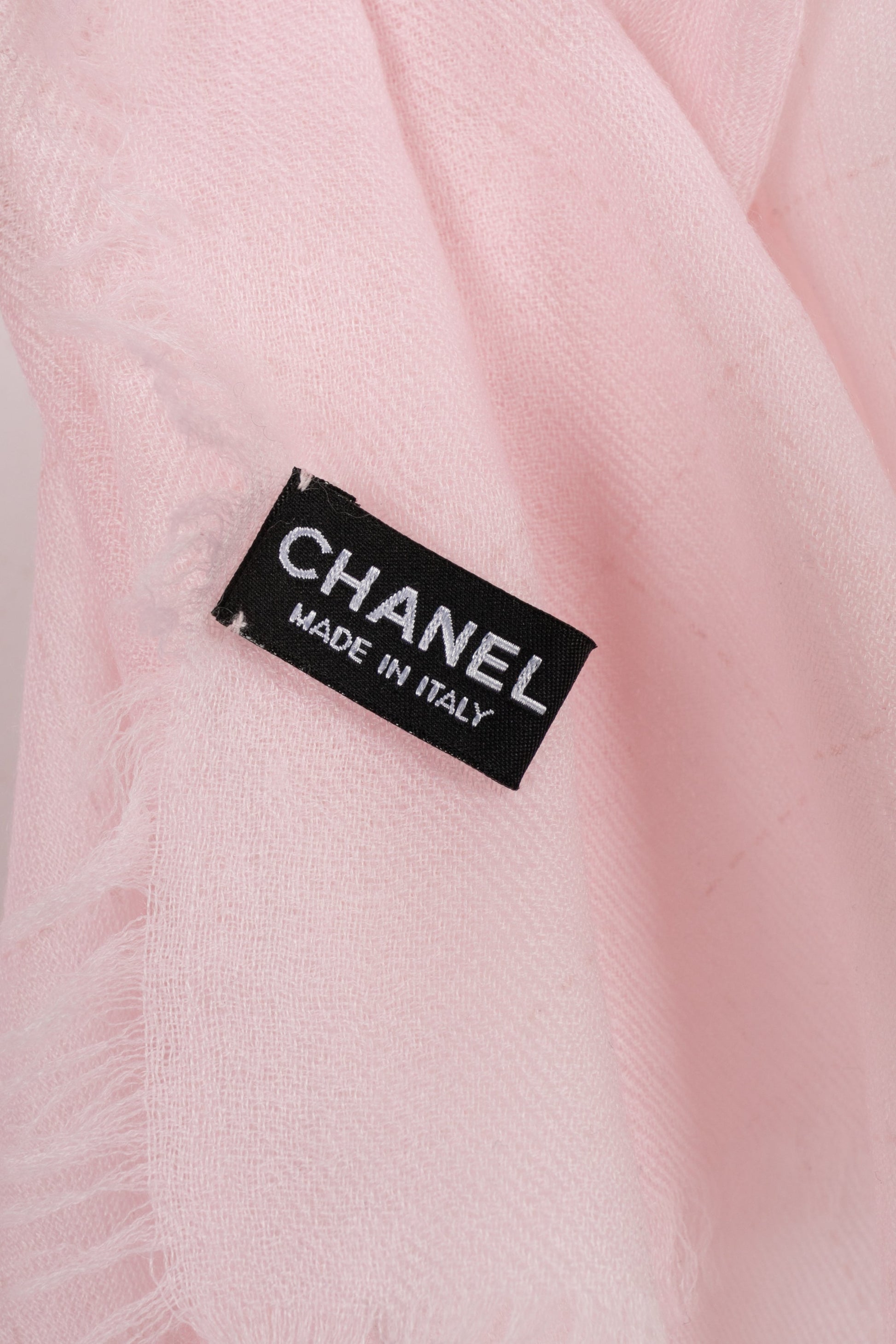 CHANEL - (Made in Italy) Etole en cachemire rose monogrammée.