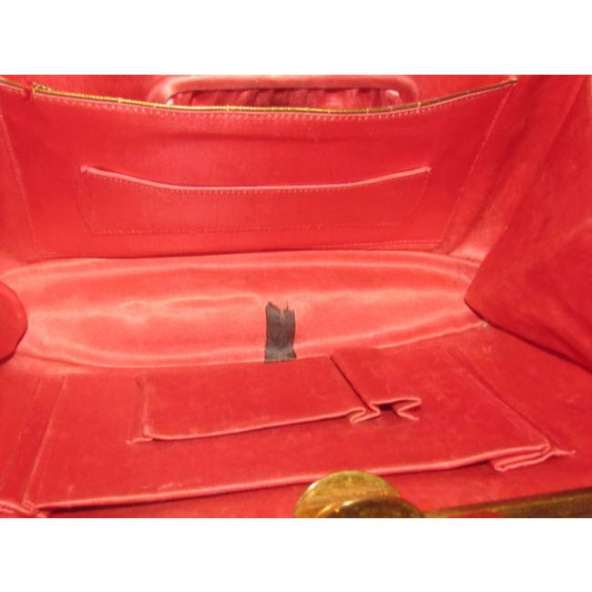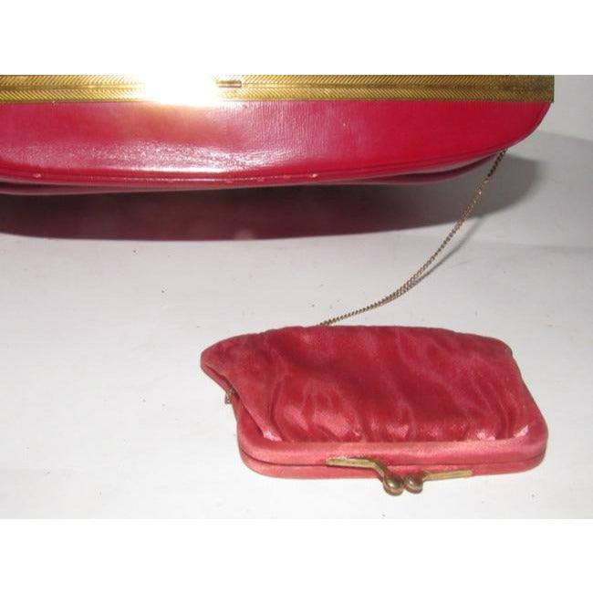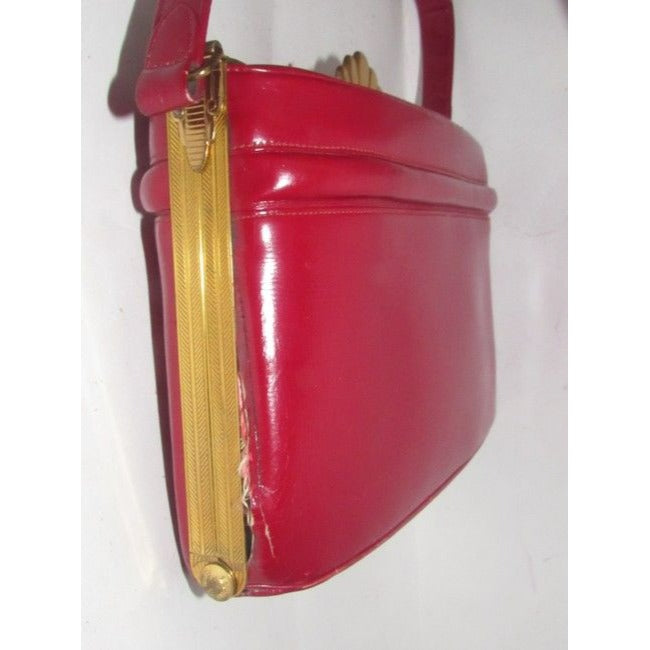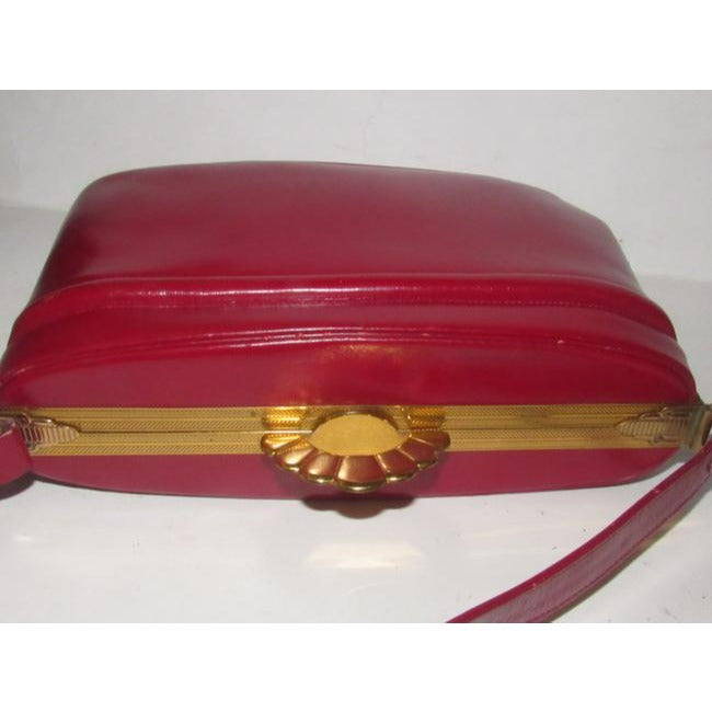 Evans Vintage True Red Leather And Engraved Gold Frame And Clasp Satchel