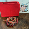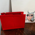 - Red Insert Package - Red Organizer, Short braided leather red handle, with a red pleather/chain crossbody strap.