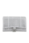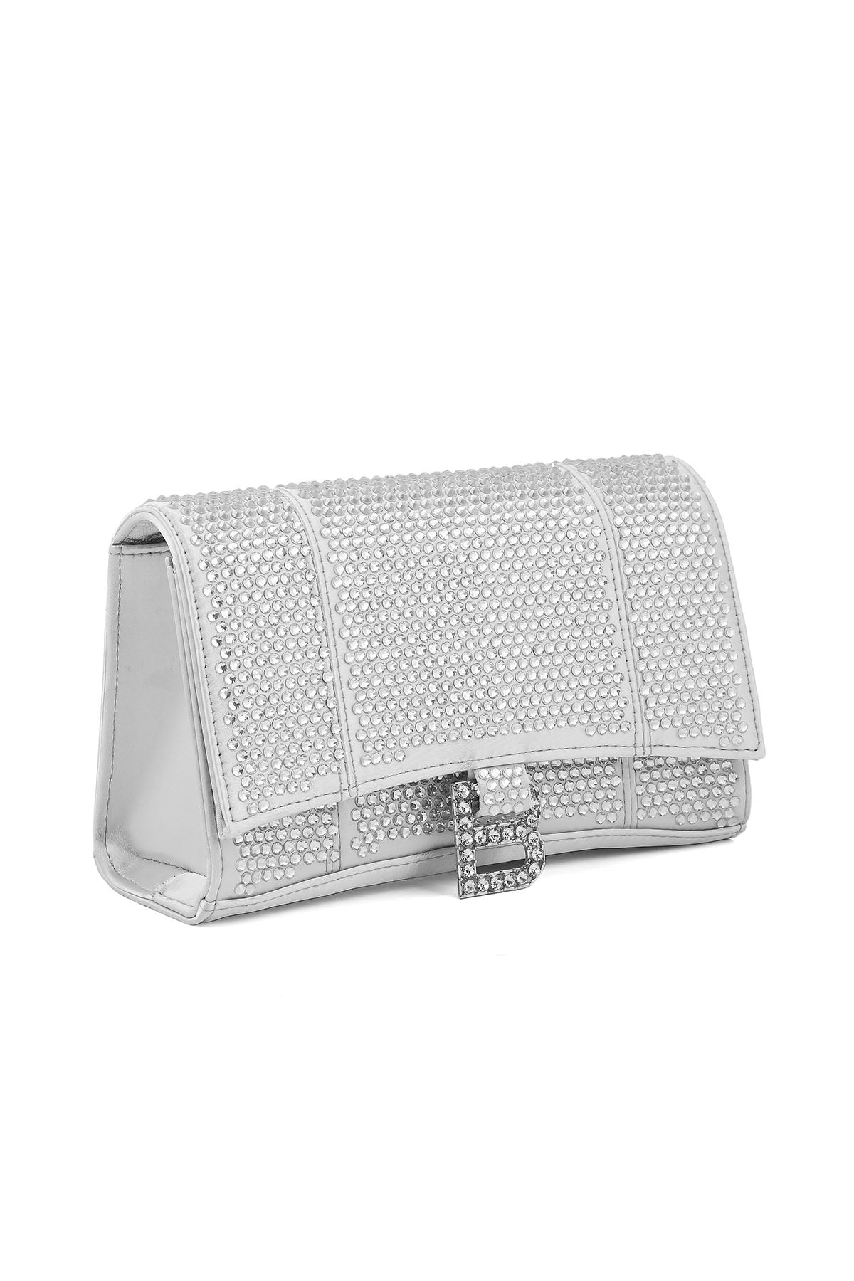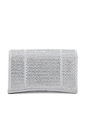 This silver clutch is crafted with the satin, having lustrous details and flapover design to complete your fancy look.