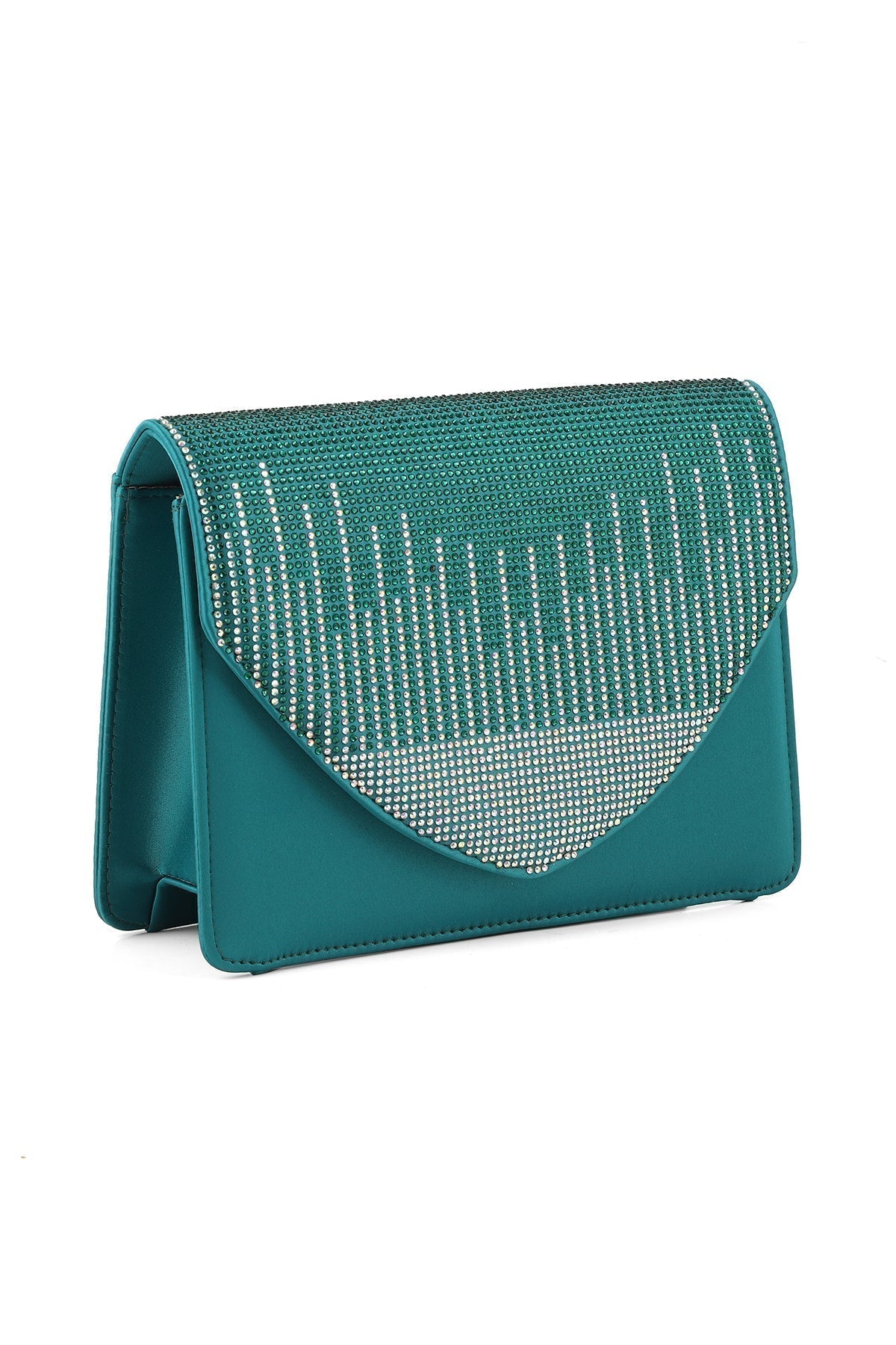 This green clutch bag is made with the finest satin, having flap at front that has beautiful matter design on it for a chic look.