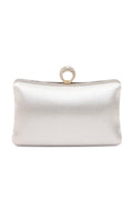 This silver colored clutch is made with the lustrous satin keeping the minimalist approach at priority, it then finished to a crystal twist lock at the front.