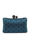 This green clutch is crafted with the lustrous satin, aDIORned with the black dots overall and then finished to a twist lock embellished with the pearls.