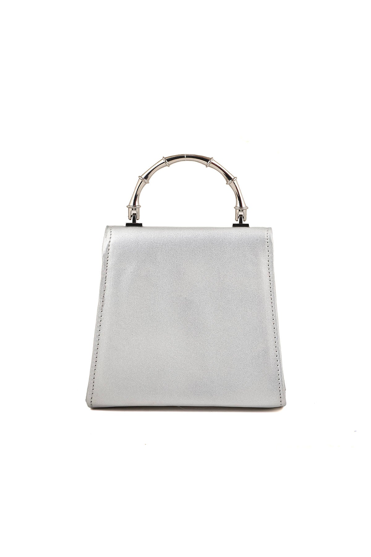 Stylish silver handbag with silver hardware on it have one steal strap, adds a touch of elegance to any outfit.