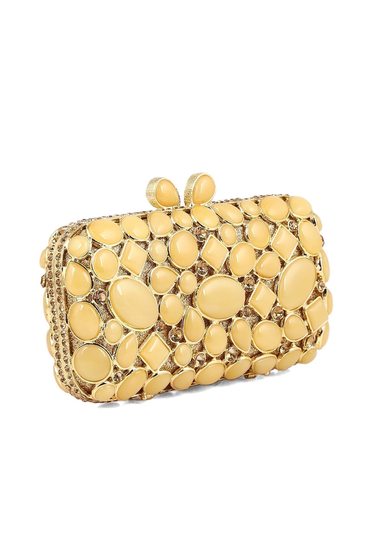 This is a beige clutch, the clutch does not have any straps or handles. The bag can be used as a stylish accessory for a formal occasion.