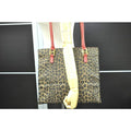 This hobo style tote can be worn as a shoulder bag. It is made of a rare animal print canvas in browns and blacks with true red leather straps and attaching the gold FF accents that attach the straps. It is a classic style but the animal print combined with the red leather and bold gold accents really makes the purse a head turner!