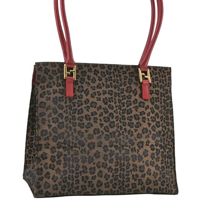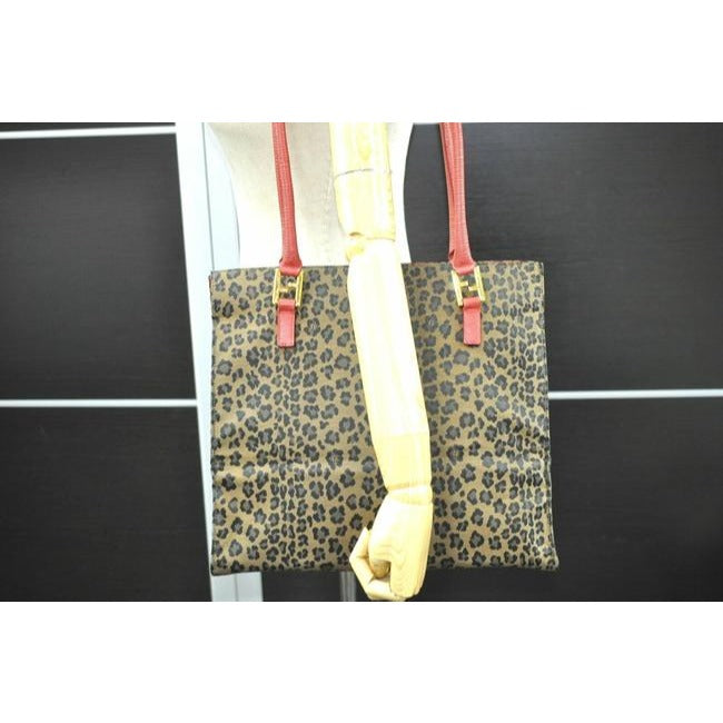 Fendi Bag Hobo Xl Limited Edition Style Leopard Print And Red Canvas Leather Tote