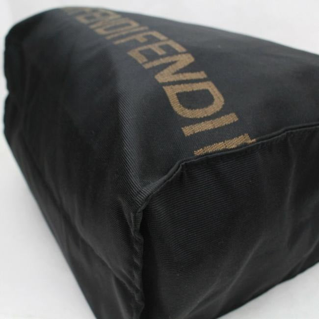 Fendi Bag Xl And Wallet Set Black Canvas With In Brown Around Bottom Leather Tote