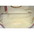 The interior is in mint condition with a tan suede lining. The shape of the purse and the use of space in this purse allows it to hold a lot more than you'd think! There is a zip pocket on the interior. This would be the perfect size for a tablet and all of your everyday essentials!