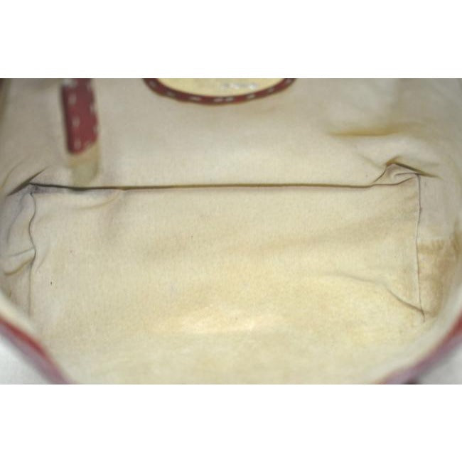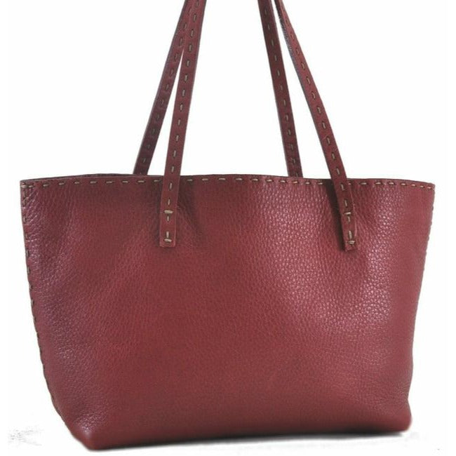 The bag is a unique purse by Fendi, because of the coveted red color! It has a tapered bottom, graduated size, and two, long thin handles! It is a handheld or shoulder bag made with supple true red leather. It has an open top, ivory contrast stitching, and sterling silver hardware.