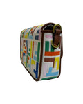 Featuring a front flap, magnetic clasp, internal compartment with zipper pocket and vintage gold-finish metalware.
