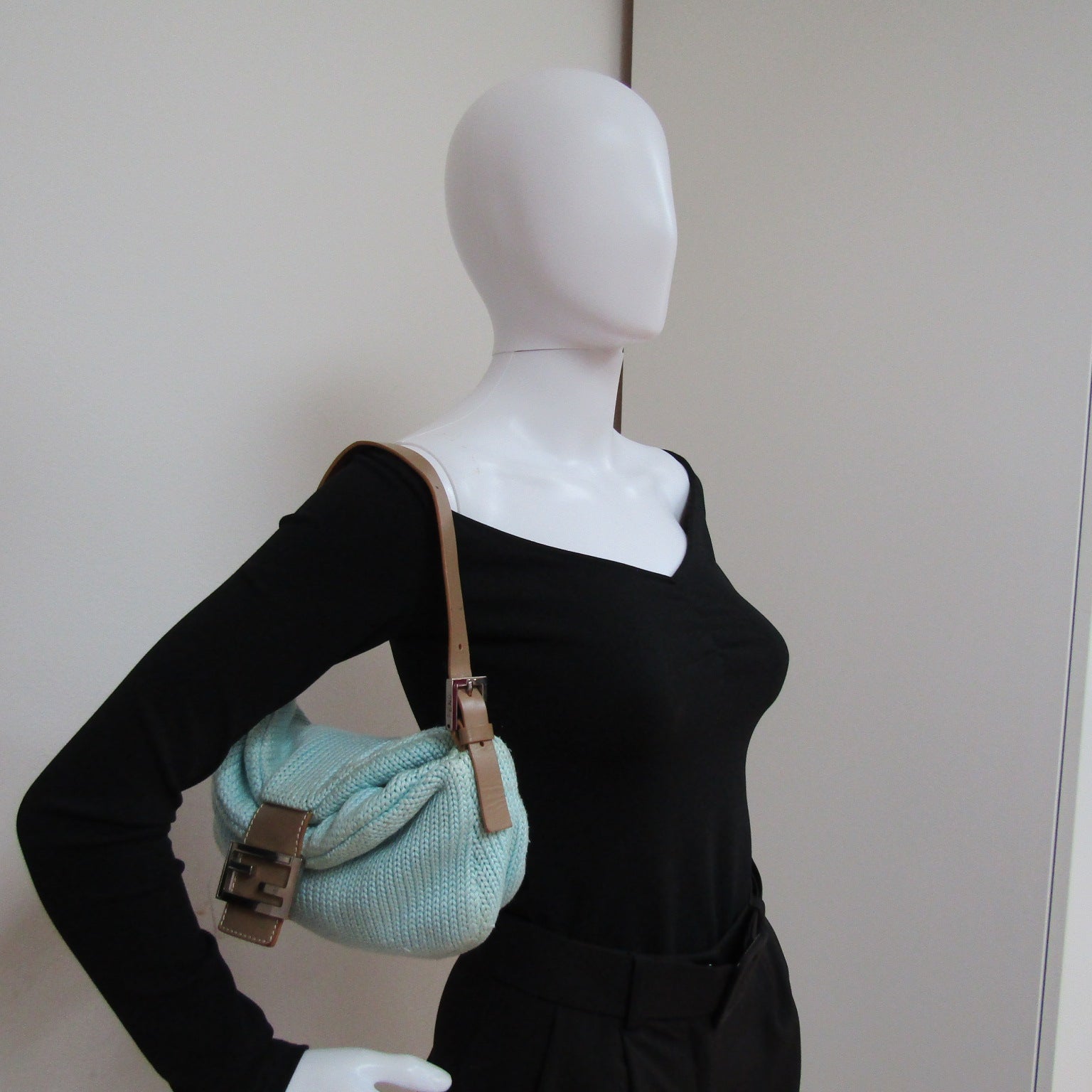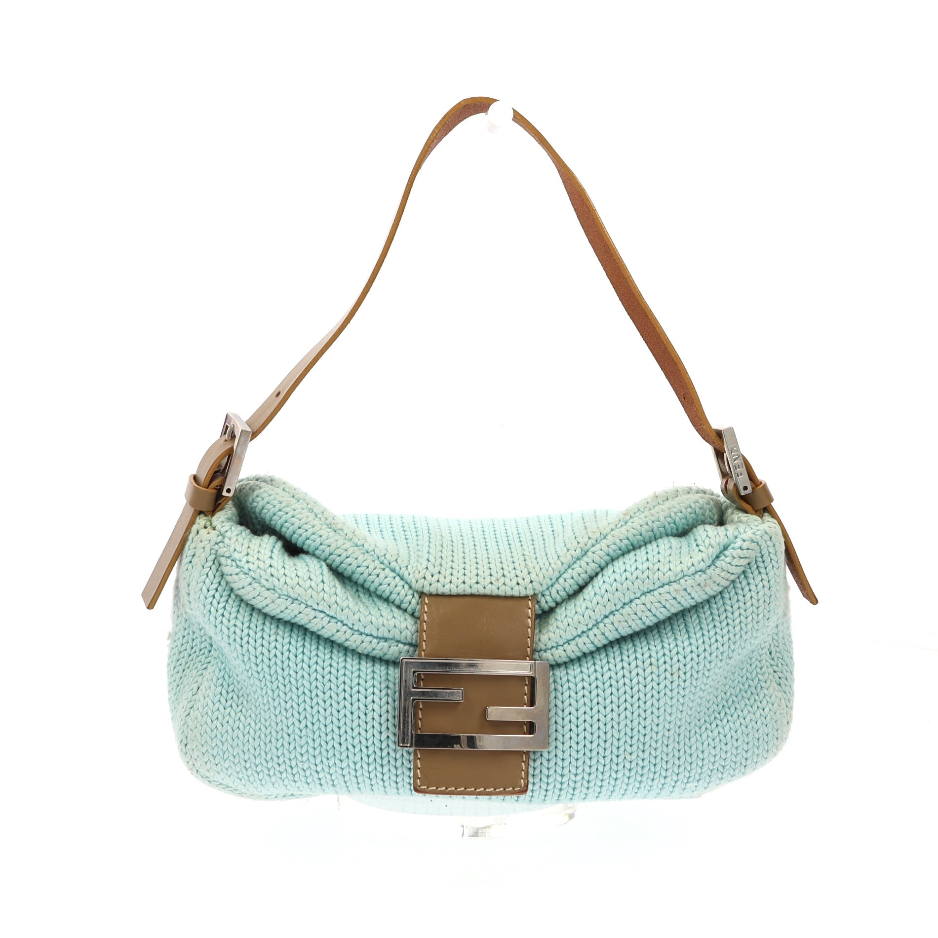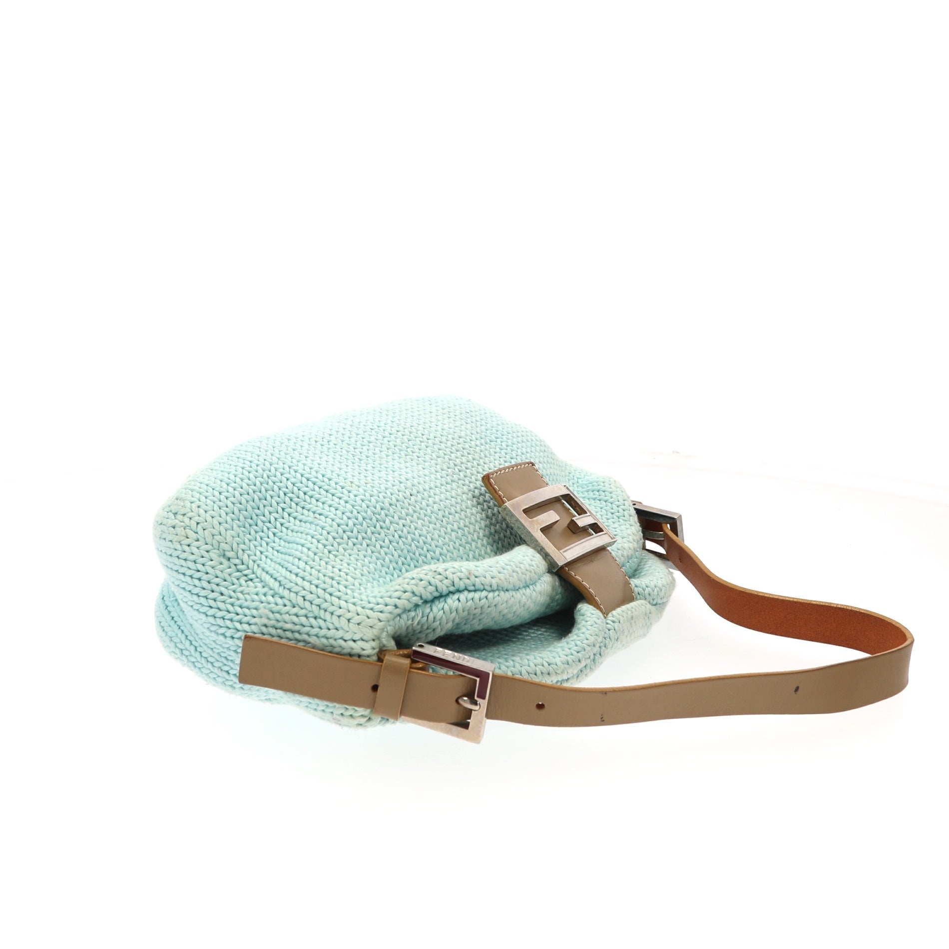 FENDI Baguette Shoulder Bag in Blue Fabric