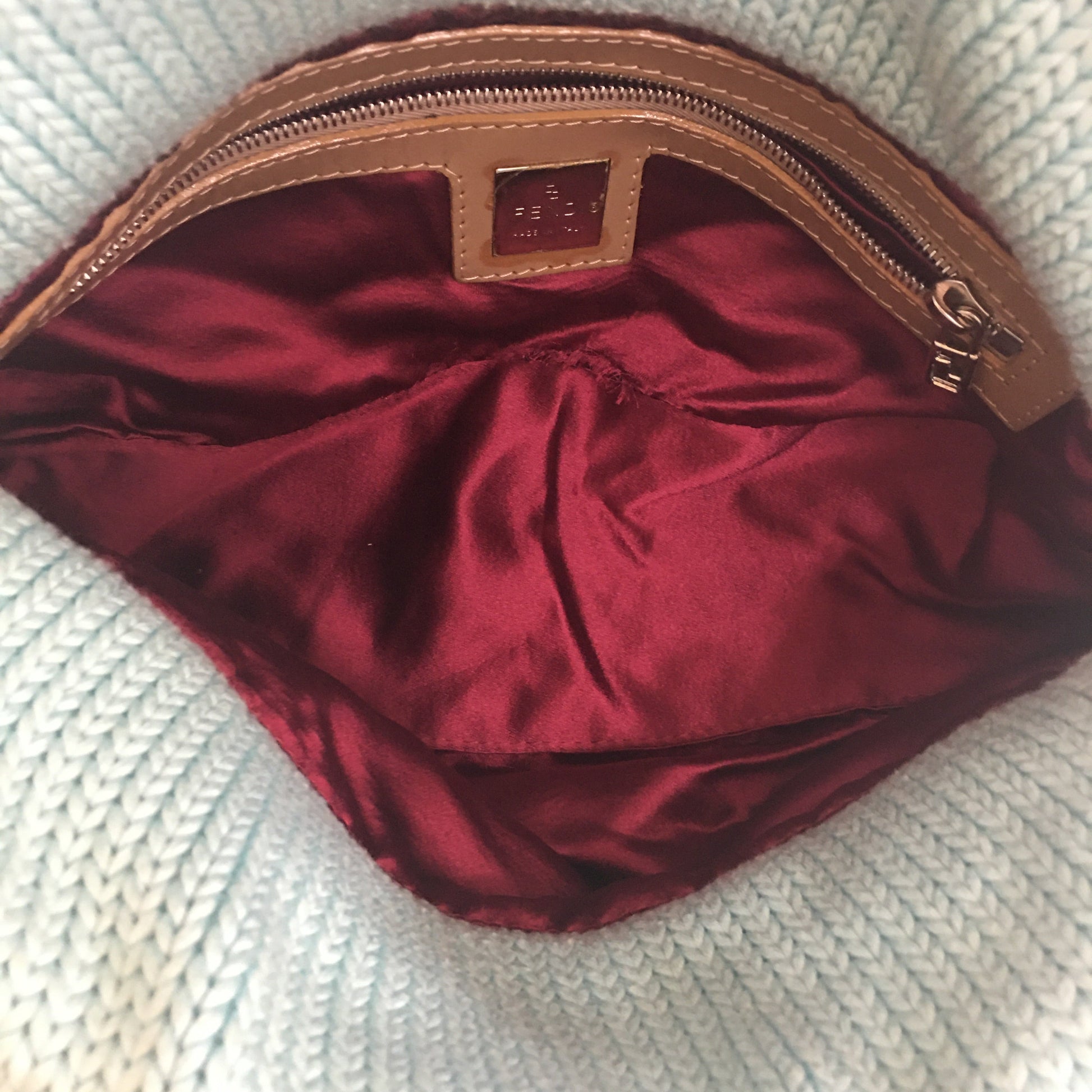 The beautiful bordeaux satin lining is clean, unfortunately there's a hole on the bottom sewing