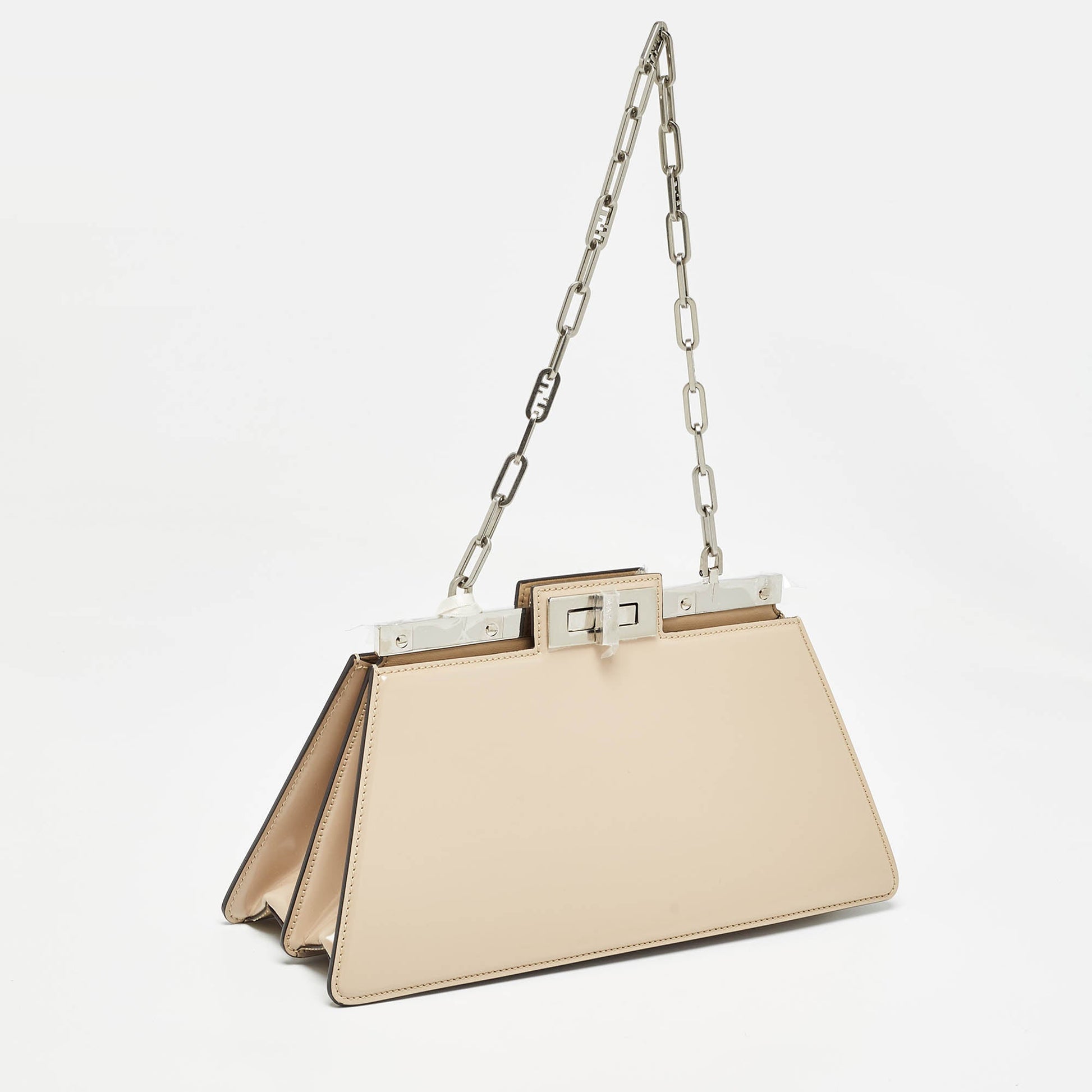 FENDI Beige Patent Leather Medium Peekaboo Cut Bag