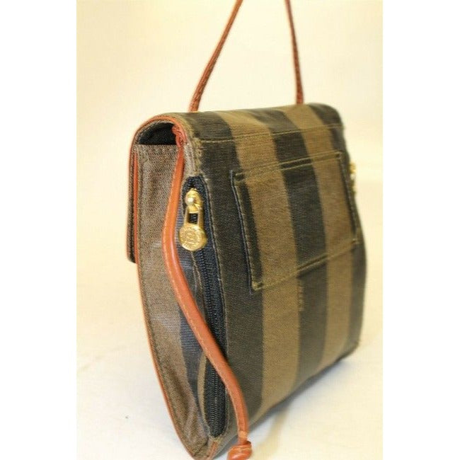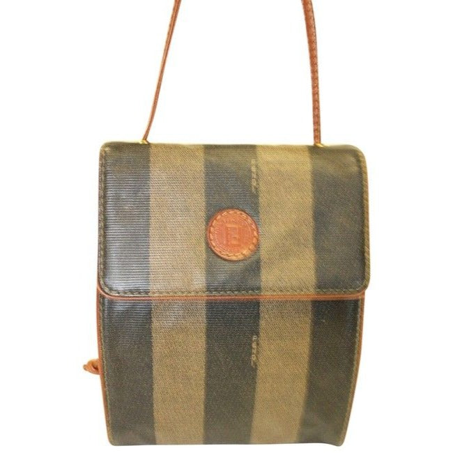 Fendi Belt Or Shoulder Purse Pequin Stripe In Browns Coated Canvas And Leather Cross Body Bag